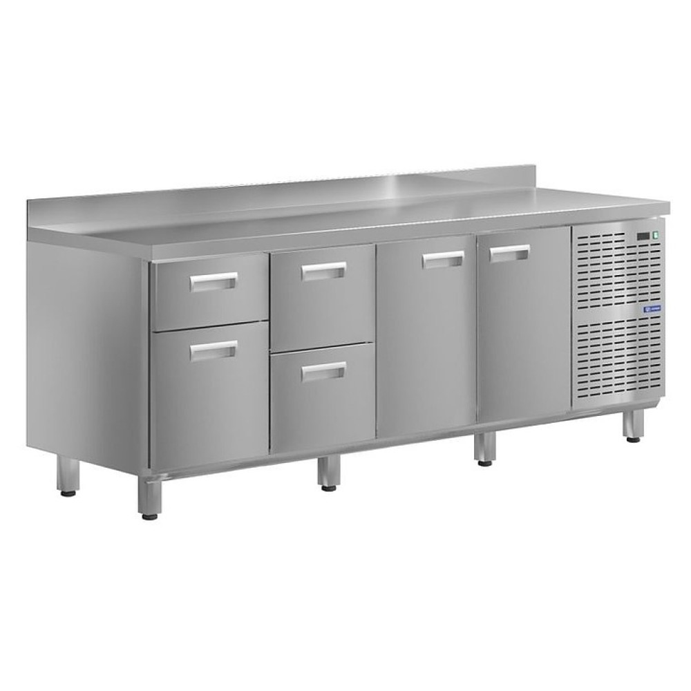 Холодильный стол KAYMAN KСХ-4211/70 предназначен для охлаждения, хранения и обработки пищевых продуктов в ресторанах, барах, кафе, столовых, на профессиональных кухнях и пищевых производствах. Конструкция двери позволяет осуществлять быструю загрузку и выгрузку продуктов, на прочной столешнице можно резать, раскатывать и отбивать полуфабрикаты. Модель оснащена 2 дверьми и 4 ящиками. Изделие выполнено из высококачественной нержавеющей стали, отличающейся прочностью и долговечностью.