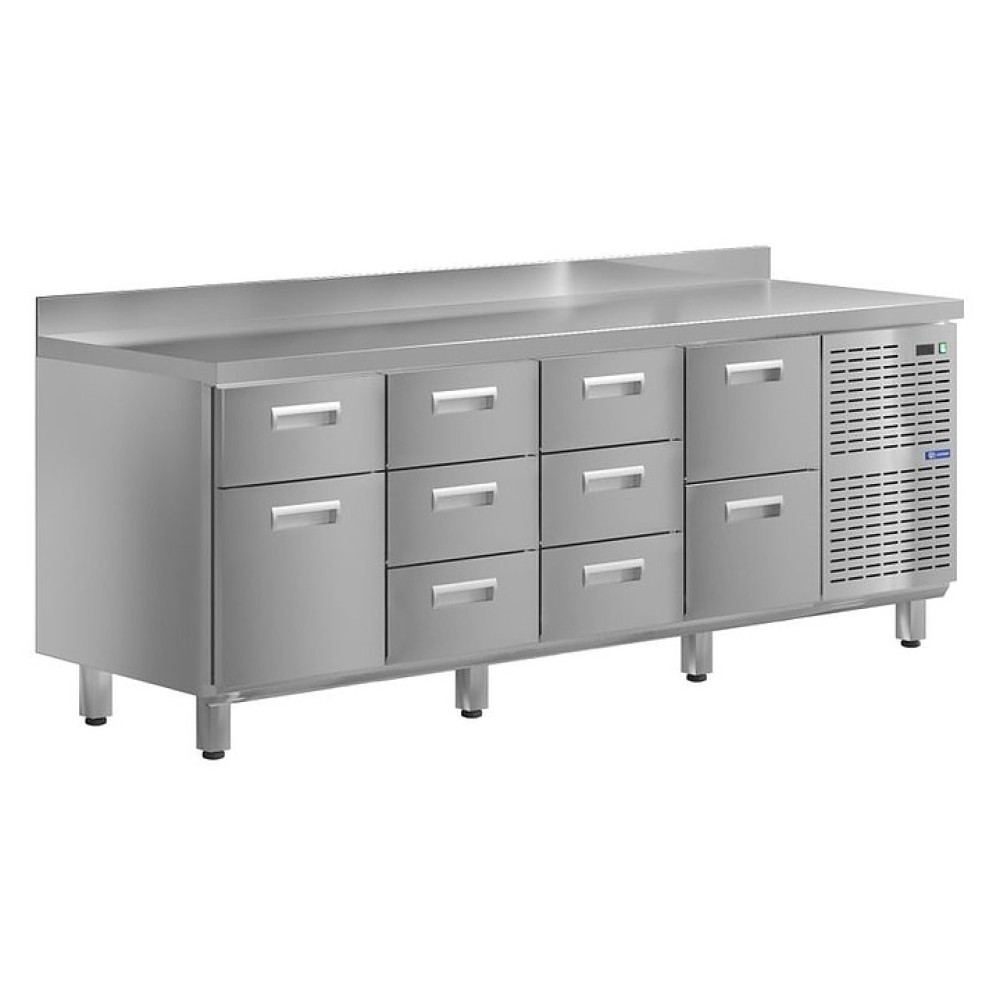 Холодильный стол KAYMAN KСХ-4332/60 предназначен для охлаждения, хранения и обработки пищевых продуктов в ресторанах, барах, кафе, столовых, на профессиональных кухнях и пищевых производствах. На прочной столешнице можно резать, раскатывать и отбивать полуфабрикаты. Модель оснащена 10 ящиками. Изделие выполнено из высококачественной нержавеющей стали, отличающейся прочностью и долговечностью.