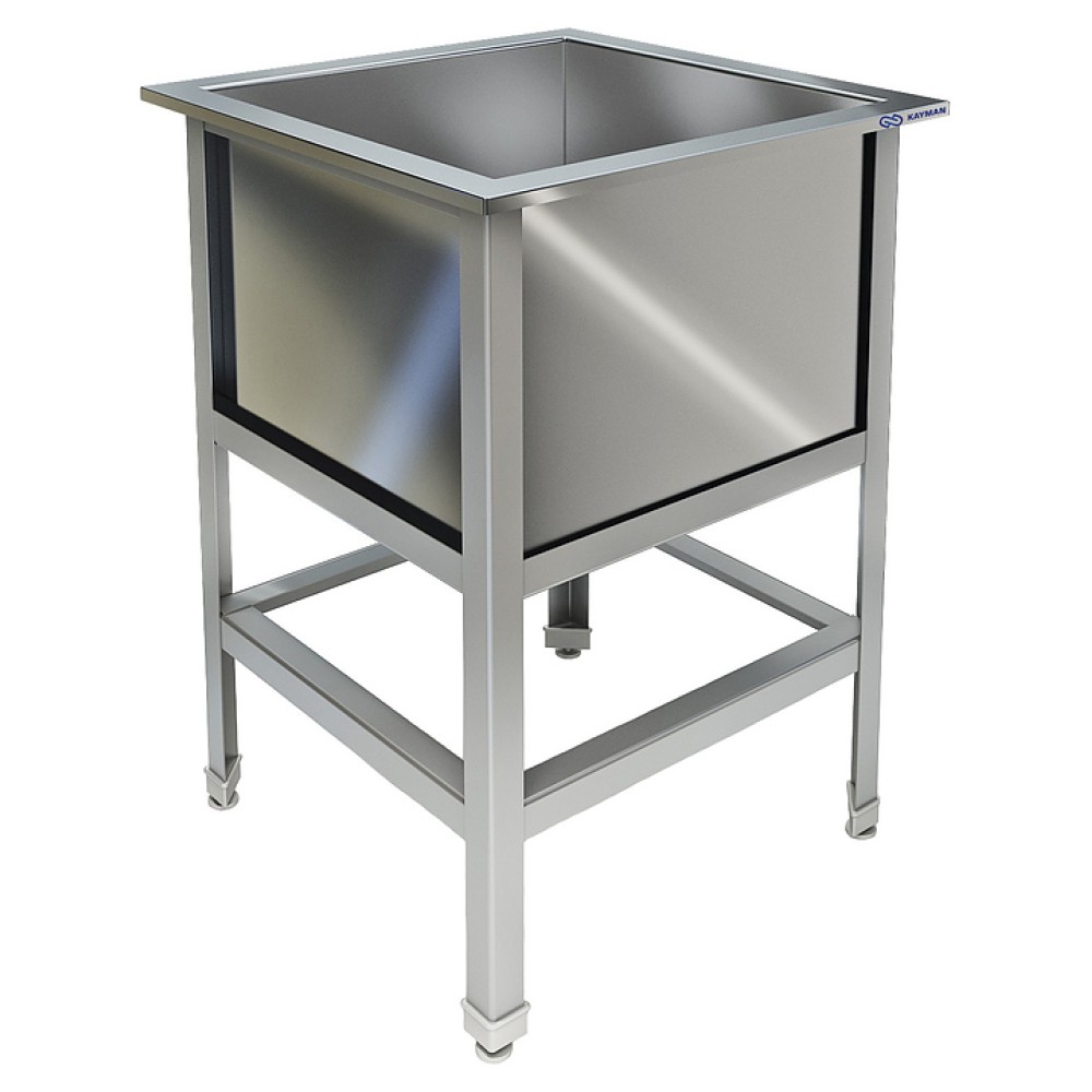 Моечная ванна KAYMAN ВМ-311/800 используется на предприятиях общественного питания и торговли для мойки продуктов питания, посуды и кухонных принадлежностей. Каркас выполнен из нержавеющего уголка из стали AISI 430, емкость - из нержавеющей стали AISI 304.