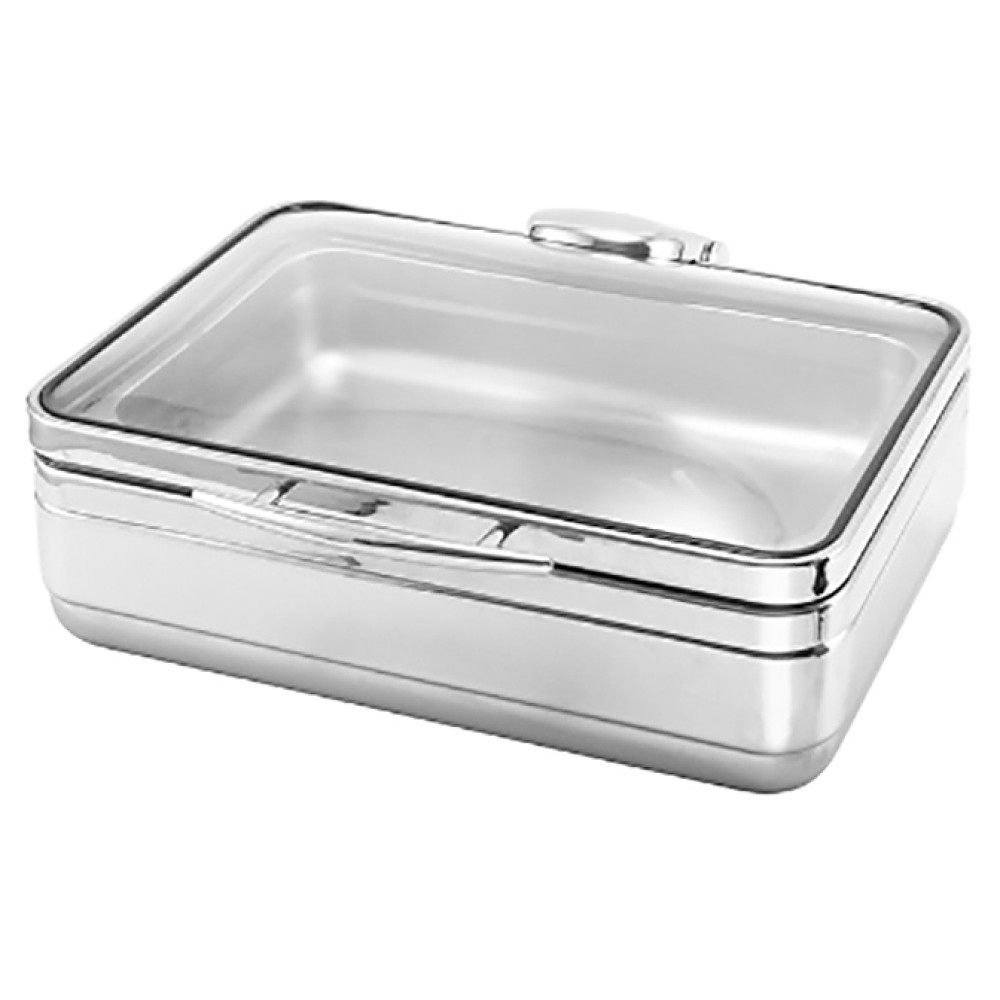 Чафинг-диш Kingo HOTEL 21306 предназначен для постоянного подогрева каши, супа и других блюд и поддержания их оптимальной температуры на предприятиях общественного питания и торговли. Модель имеет прямоугольную форму и оснащена обзорной откидной крышкой с ручкой. Изделие выполнено из нержавеющей полированной стали, крышка - из нержавеющей стали со стеклянной вставкой.
