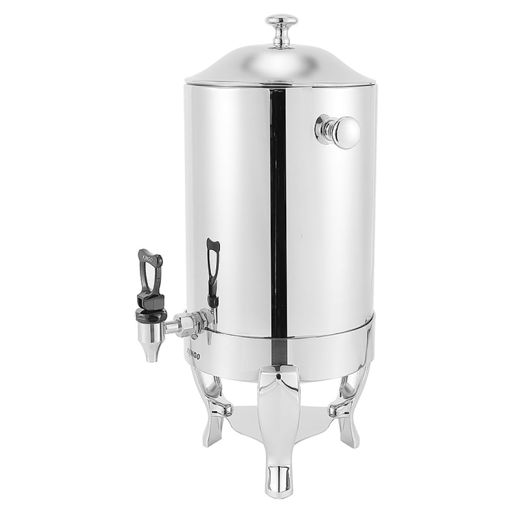 Диспенсер Kingo HOTEL 10701G используется на предприятиях общественного питания и в домашних условиях для порционного розлива соков и других охлажденных напитков. Модель оснащена емкостью с краном для розлива, крышкой с ручкой и 3 устойчивыми опорами.