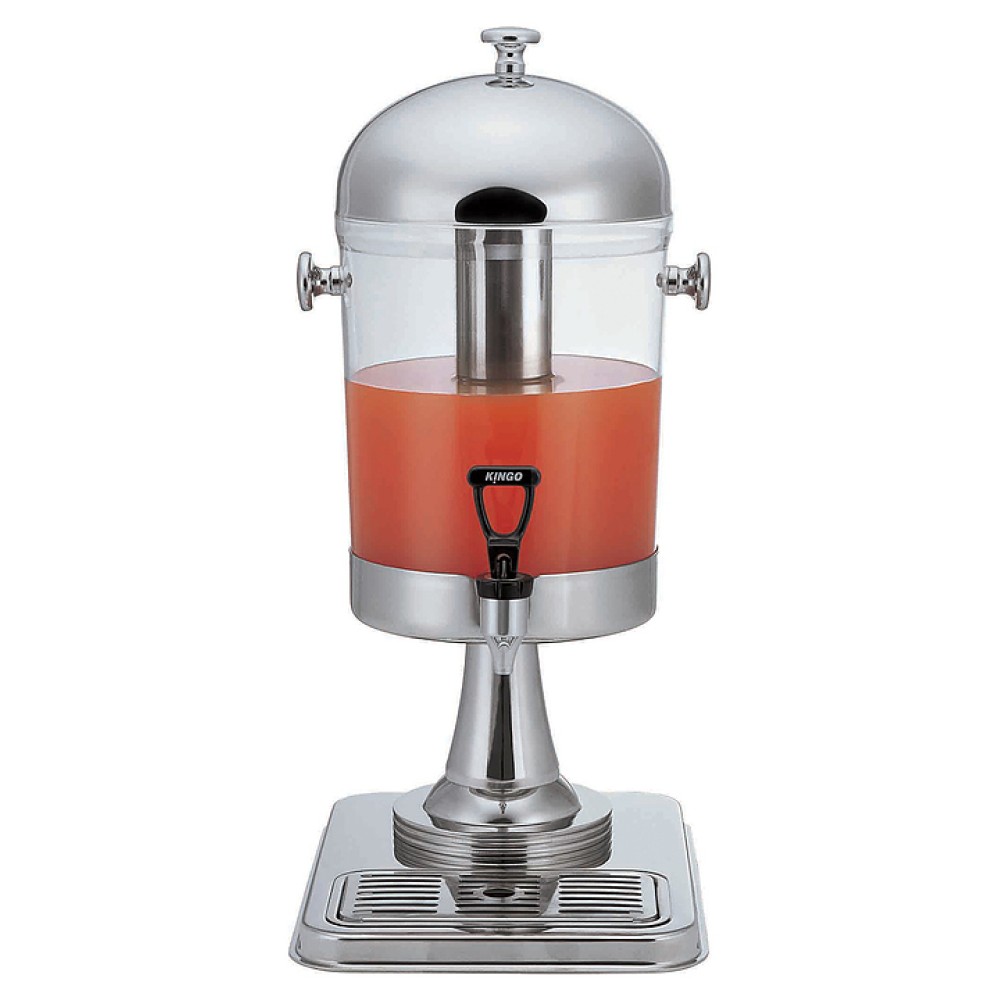Диспенсер Kingo HOTEL 10401-2 используется на предприятиях общественного питания, в кухнях отелей и уличных барах при обслуживании банкетных, кейтеринговых мероприятий и кофе-брейков для порционного розлива сока и охлажденных напитков. Модель оснащена емкостью с краном для розлива, крышкой с ручкой, подставкой для тары и устойчивой опорой.