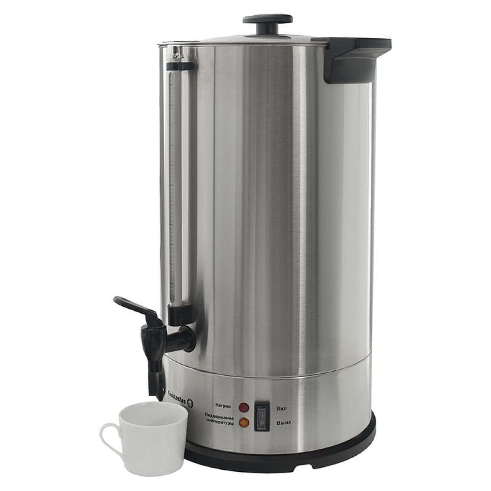 Электрокипятильник Foodatlas WB-DW20L используется на предприятиях общественного питания и торговли для нагрева воды и последующего поддержания заданной температуры. Двойные стенки обеспечивают высокую теплоизоляцию, сохраняют воду горячей дольше, обеспечивают безопасность, предотвращая перегрев наружной поверхности. Модель оснащена краном для розлива и крышкой с рукояткой. Корпус выполнен из высококачественной нержавеющей стали, отличающейся прочностью, долговечностью и устойчивостью к коррозии.
