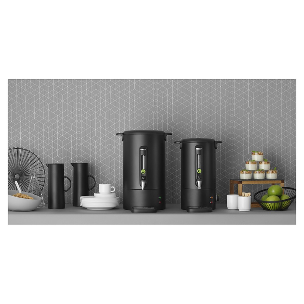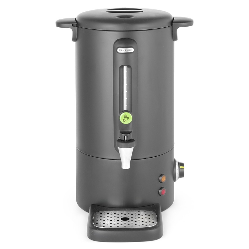 Кипятильник HENDI 211465 предназначен для нагрева и кипячения воды на предприятиях общественного питания и торговли. Модель оснащена световым индикатором завершения нагрева и необходимости удаления накипи, ручками и крышкой. Корпус выполнен из нержавеющей стали с черным матовым покрытием, ручки - из полипропиллена.