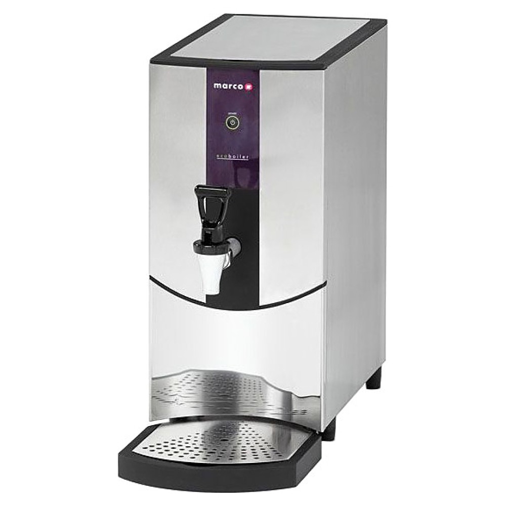 Кипятильник Marco Ecoboiler T5 используется на предприятиях общественного питания и торговли, в офисах и гостиницах для нагрева большого количества воды. Модель оснащена сливным краном и каплесборником. Залив воды осуществляется автоматически. Бойлер выполнен из нержавеющей стали.