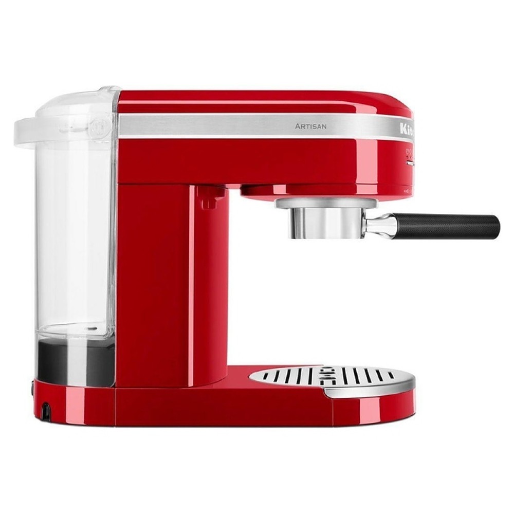 Рожковая кофеварка KitchenAid Artisan 5KES6503EER используется для приготовления кофе эспрессо и напитков на его основе в домашних условиях. Модель оснащена эффективным насосом (Италия), кабелем питания с вилкой, расположенной на фронтальной стенке панелью управления с нажимными функциональными клавишами и светодиодными сигнальными индикаторами. Корпус выполнен из металла и пластика с покрытием оттенка имперский красный (Empire Red) и декоративной серебристой полосой с логотипом по периметру верхней части, паровая трубка, корпус холдера, головка темпера и решетка каплесборника – из высококачественной нержавеющей стали, питчер – из металла с полированной серебристой поверхностью, рукоятки холдера и темпера – из черного АБС-пластика.