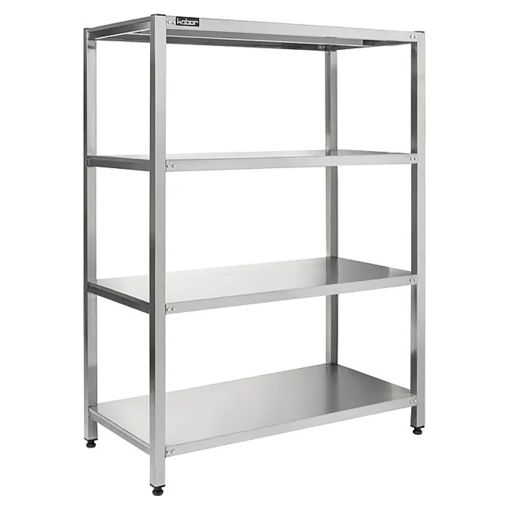 Кухонный стеллаж Кобор СКТР-150/40 предназначен для хранения посуды, различного инвентаря и сухих продуктов на предприятиях общественного питания и торговли. Модель оснащена регулируемыми по высоте ножками с опорами, которые не подвержены коррозии. Разборный каркас нержавеющая сталь, труба 40х40, полки - из нержавеющей стали AISI 430.