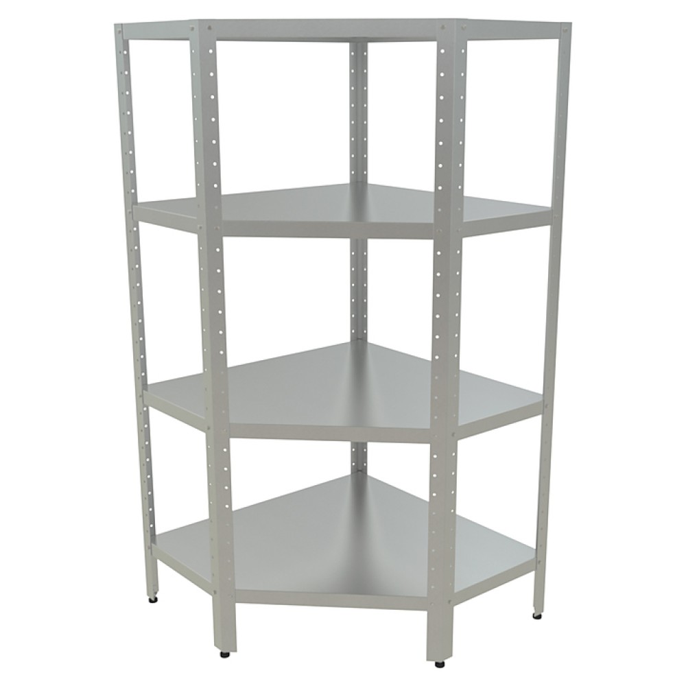 Угловой кухонный стеллаж Кобор СКУ-6/4-80/100 предназначен для хранения посуды, различного инвентаря и сухих продуктов на предприятиях общественного питания и торговли. Модель оснащена сплошными полками. Разборный каркас выполнен из уголка из оцинкованной стали, полки - из нержавеющей стали AISI 430.