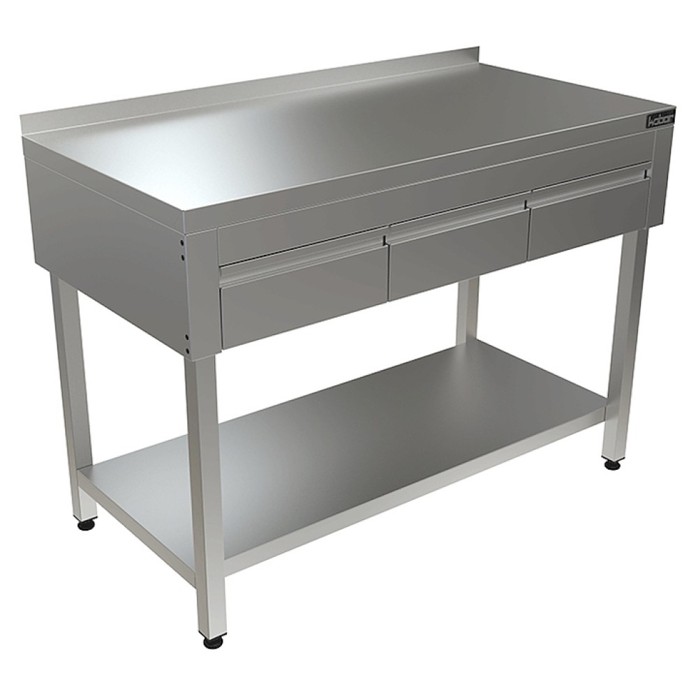Стол для овощей Кобор СПБЯ-120/60/П имеет столешницу, изготовленную из высококачественной нержавеющей стали, а также во избежание прогибов укрепленную листом ориентированно стружечной плитой толщиной 16 мм. Стол оснащен ящиками и полкой. Каркас стола изготовлен из нержавеющей квадратной трубы 40х40 мм, ножки регулируются по высоте позволяя избежать наклона рабочей поверхности. Товар поставляется в разобранном виде и в упаковке для облегчения транспортировки.