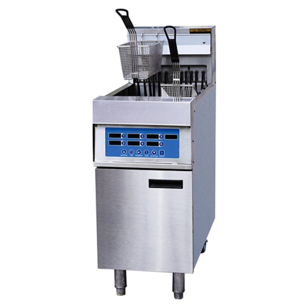 Фритюрница Kocateq EF18C предназначена для приготовления различных продуктов в большом количестве масла или жира на предприятиях общественного питания и торговли. Модель оснащена цифровой панелью управления, электронным контроллером температуры и времени, и защитным термостатом, автоматически отключающим напряжение при повреждении основного термостата. Корпус выполнен из нержавеющей стали AISI 304.