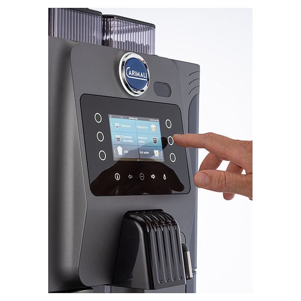 Кофемашина Carimali BlueDot BD-00-01-03 используется на предприятиях общественного питания и торговли, в отелях и офисах для приготовления кофе и напитков на его основе. Модель оснащена панелью управления с 6 кнопками и 3,4" TFT дисплеем, сливным поддоном и контейнером для отходов.
