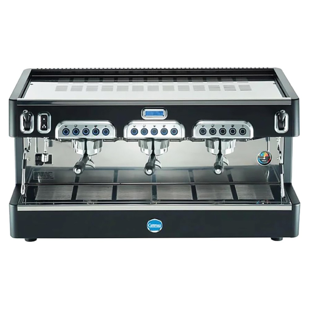 Кофемашина Carimali Cento 3 Gr высокие группы используется в кофейнях, киосках, барах и ресторанах для приготовления кофе и напитков на его основе. Модель оснащена 5 кнопками управления на группу, буквенно-цифровым дисплеем, бойлером с теплообменником с термосифонической циркуляцией и площадкой для подогрева чашек из нержавеющей стали.