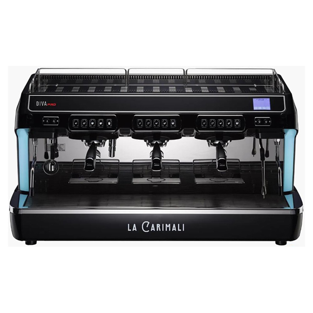 Кофемашина Carimali Diva PRO 3 Gr высокие группы+автокапучинатор используется в кофейнях, барах и ресторанах для приготовления кофе и напитков на его основе. Модель оснащена панелью управления с 5 кнопками для каждой группы и сенсорным графическим дисплеем, бойлером увеличенного объема и электроподогревателем чашек. Отделка корпуса выполнена из алюминия и нержавеющей стали.