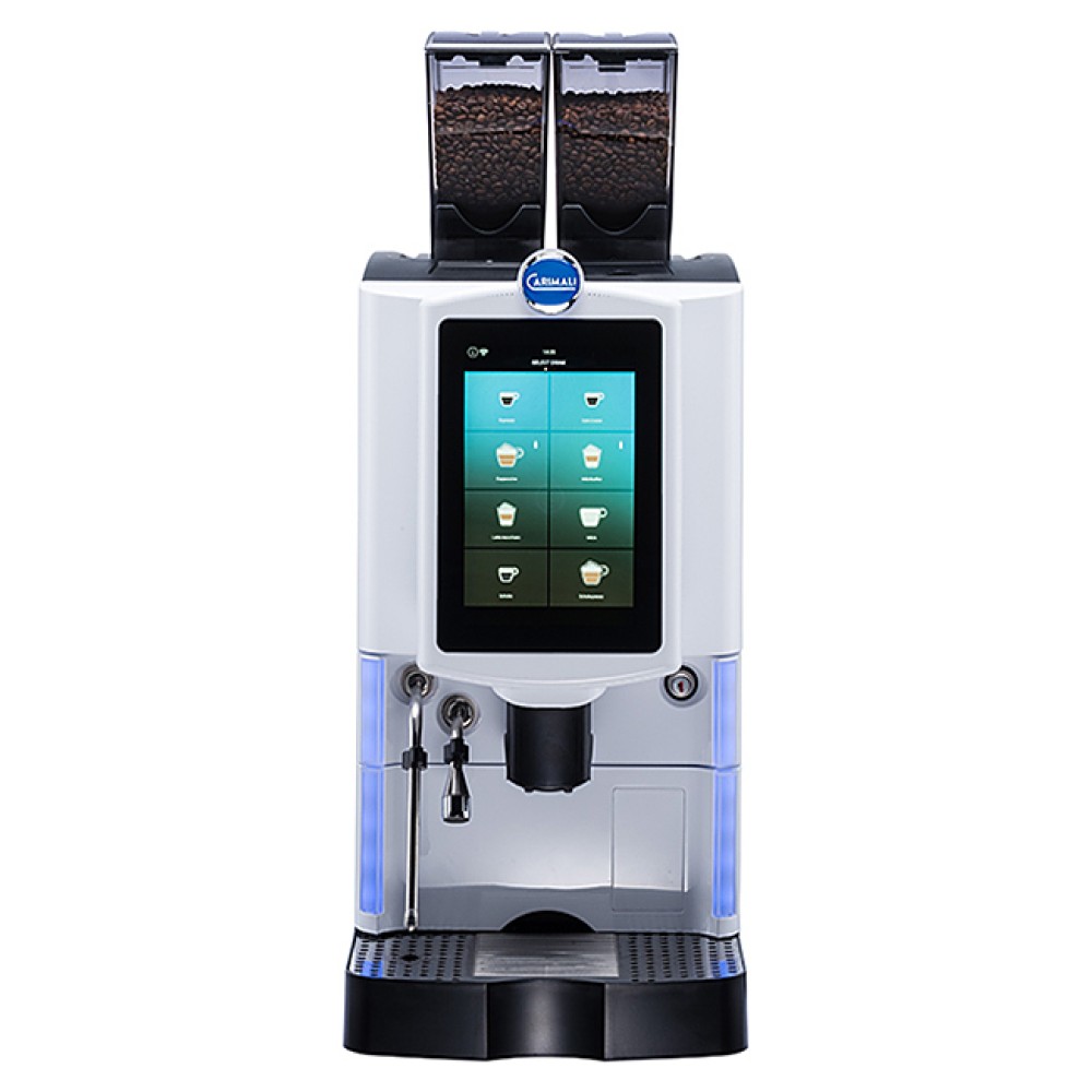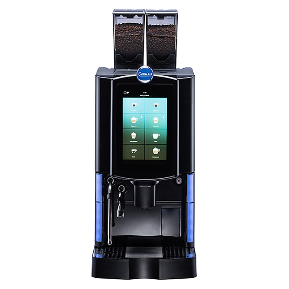 Кофемашина Carimali Optima Ultra OU-01-02-00 используется в зонах самообслуживания на предприятиях общественного питания и торговли, в отелях и офисах для приготовления кофе и напитков на его основе. Модель оснащена 10" сенсорным экраном, 2 бункерами для зерен со встроенными кофемолками с плоскими металлическими лезвиями, сливным поддоном и контейнером для отходов. Варочная группа выполнена из металла.