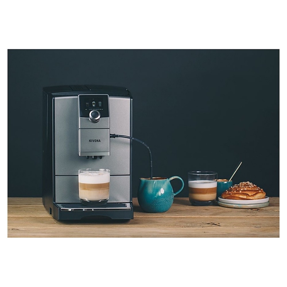 Автоматическая кофемашина Nivona CafeRomatica NICR 795 предназначена для приготовления разнообразных кофейных напитков, таких как эспрессо, латте, капучино в кофейнях, барах и ресторанах. Модель оснащена цветным TFT-дисплеем, встроенным Bluetooth, системой управления шатл, подстветкой для чашек и съемным варочным блоком. Корпус выполнен из ABS-пластика с хромированными вставками, конические жернова и измельчитель - из закаленной нержавеющей стали.