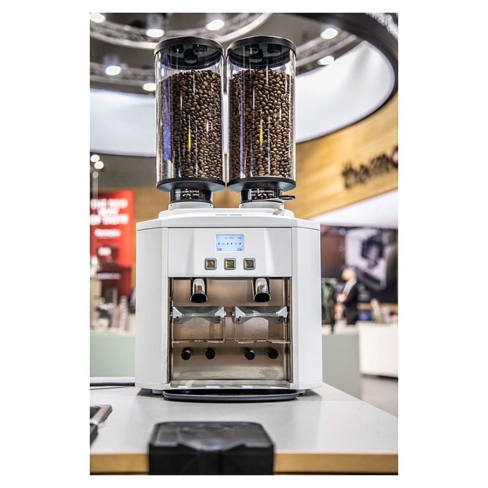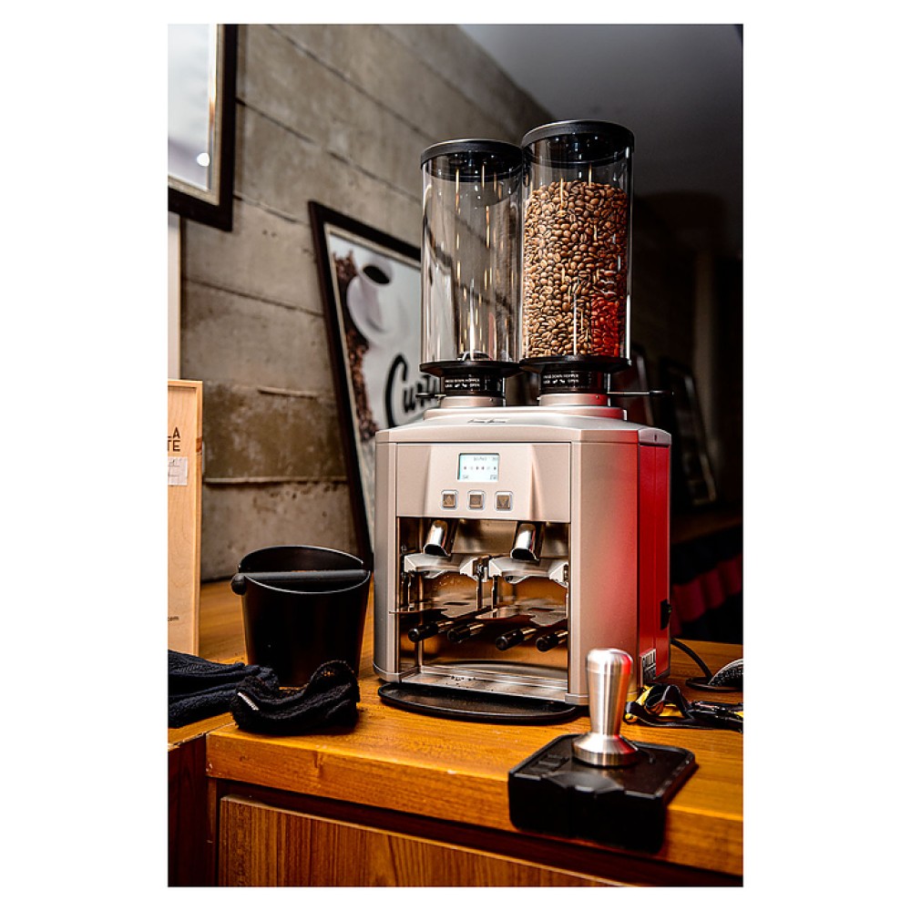 Автоматическая кофемолка Dalla Corte DC TWO используется на предприятиях общественного питания и торговли для получения молотого кофе из зерен. Модель оснащена электронной панелью управления, позволяющей настроить расстояние между жерновами с точностью до 0,01 мм, 2 бункерами и датчиками распознавания портафильтра и плоскими жерновами с эксклюзивным дизайном.