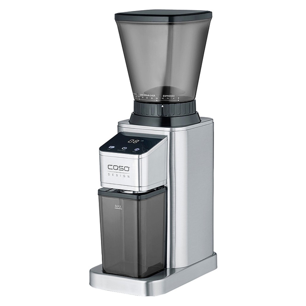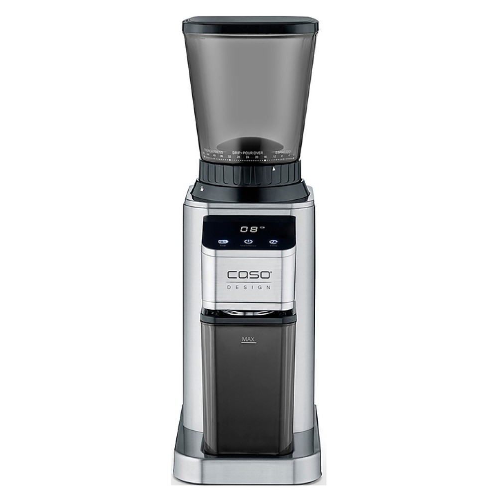 Кофемолка CASO BaristaChef Inox используется в кофейнях, барах, ресторанах и в домашних условиях для получения молотого кофе из зерен. Модель оснащена коническими жерновами, съемным контейнером для зерен и герметичным контейнером для молотого кофе с инновационной антистатической технологией. Высокая скорость измельчения сохраняет аромат зерен и обеспечивает низкий нагрев. Корпус и жернова выполнены из нержавеющей стали.