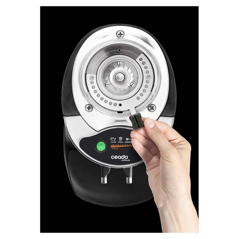 Кофемолка Ceado coffee E8D используется в в магазинах и кофейнях для получения молотого кофе из зерен. Модель оснащена ручным переключателем для начала помола, таймером для регулировки дозировки, прищепкой для пакетов и плоскими жерновами из нержавеющей стали. Бункер выполнен из поликарбоната.