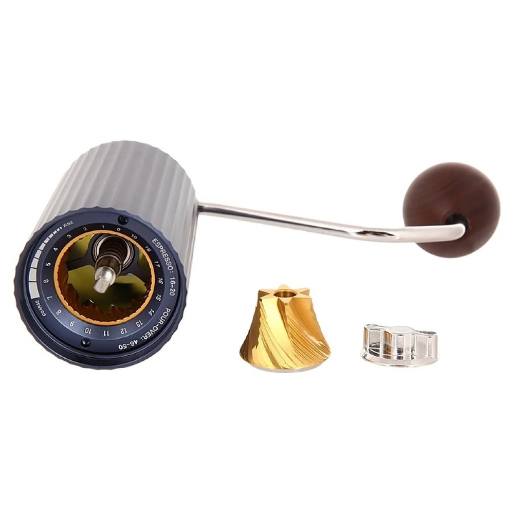 Механическая кофемолка ZeroHero Z3 Pro используется в офисах, гостиницах и домашних усдлвиях для приготовления молотого кофе из зерен для альтернативных способов заваривания – турка, гейзерная кофеварка, аэропресс, пуровер, капельная кофеварка, френч-пресс. Модель оснащена удобной изогнутой рукояткой с массивным наконечником. Корпус цилиндрической формы выполнен из алюминиевого сплава с покрытием синего оттенка, наконечник рукоятки – из массива двевесины, жернова – из углеродистой нержавеющей стали марки 420 с титановым напылением, упаковка – картонная коробка.
