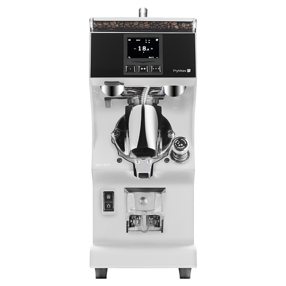 Кофемолка-дозатор Victoria Arduino Mythos MY 85 предназначена для помола зерен кофе на предприятиях общественного питания и торговли, в гостиницах, офисах, а также домашних условиях. Модель оснащена фронтальной наклонной панелью с 3 функциональными клавишами и сенсорным жидкокристаллическим дисплеем управления и индикации (touchscreen). Корпус выполнен из нержавеющей стали с покрытием белого цвета, наклонная фронтальная панель – из черного стекла, бункер – из прозрачного пластика.