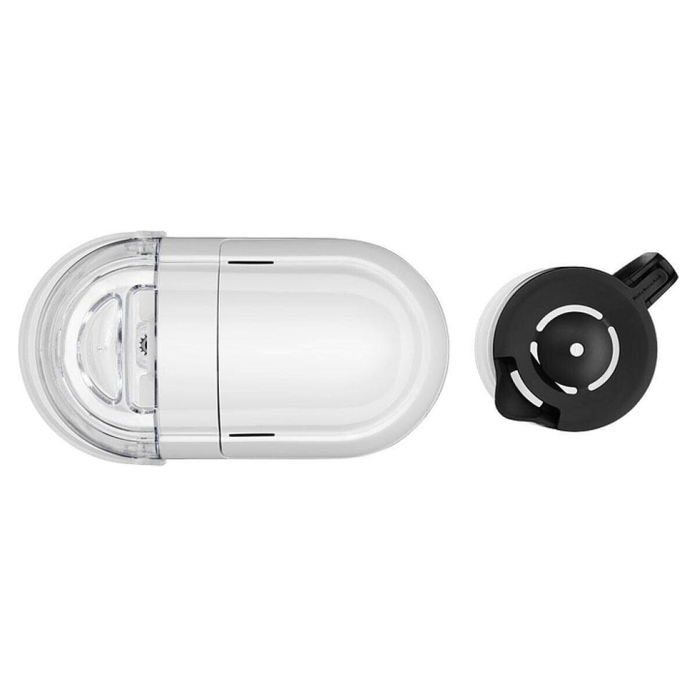 Капельная кофеварка KitchenAid Classic 5KCM1208EWH предназначена для приготовления кофе в гостиницах, офисах и домашних условиях. Модель оснащена откидными крышкой и распылительной головкой, резервуаром для фильтра, кабелем питания вилкой и расположенной на боковой стенке электронной панелью управления с нажимными функциональными клавишами, информативным жидкокристаллическим дисплеем с цифровыми и символьными сегментами с белой подсветкой индикации. Вертикально ориентированный корпус обтекаемой формы выполнен из ударопрочного пластика с поверхностью белого цвета и декорирован горизонтальной серебристой полосой с логатипом в верхней части, нагревательная пластина – из нержавеющей стали, резервуар для фильтра – из белого пластика, резервуар для воды – из прозрачного полимера, кувшин – из прозрачного стекла с серебристыми металлическими окантовками в верхней части и основании, рукоятка и крышка кувшина – из черного пластика с матовой поверхностью.