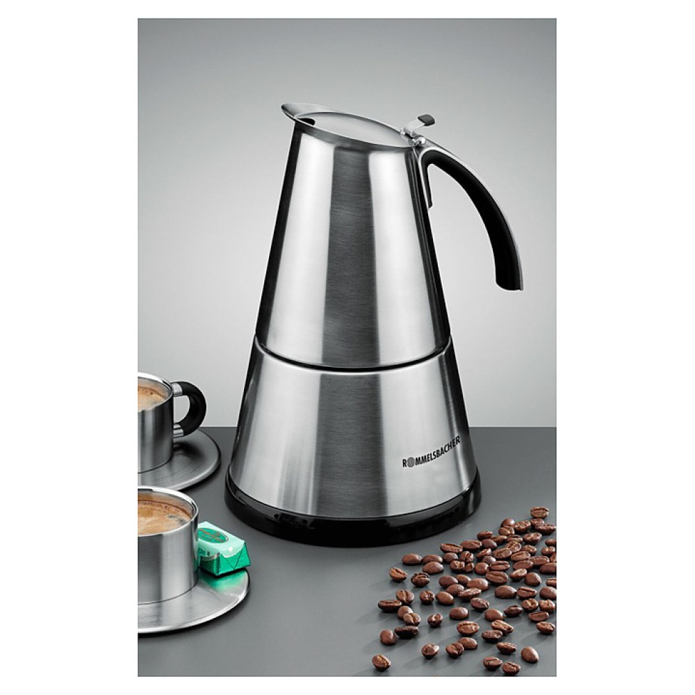 Гейзерная кофеварка Rommelsbacher EKO 366/E используется в квартирах, частных домах, кафе и ресторанах. Модель оснащена функцией автоматического отключения, скрытым нагревательным элементом и защитой от перегрева и кипения воды. Корпус и фильтр-вставки выполнены из нержавеющей стали. Прибор имеет cтильный современный дизайн, удобен и прост в использовании.