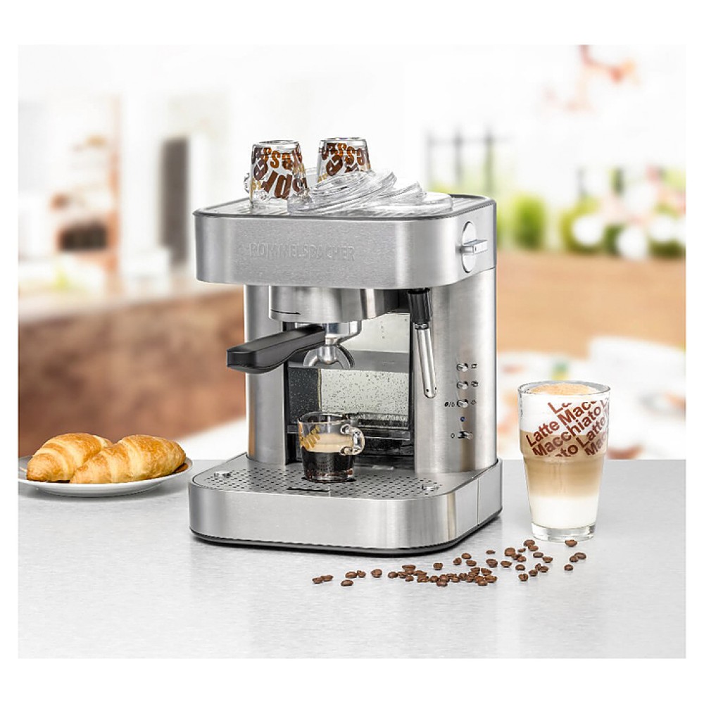 Кофеварка Rommelsbacher EKS 2010 используется в квартирах, частных домах, кафе и ресторанах. Модель оснащена функцией энергосбережения (включается через 10 минут ожидания), функцией предварительного заваривания и высококачественным насосом ULKA (Италия). Корпус, капучинатор и фильтр-вставки выполнены из нержавеющей стали, термоблок и портафильтр - из литого алюминия. Прибор имеет cтильный современный дизайн, удобен и прост в использовании.