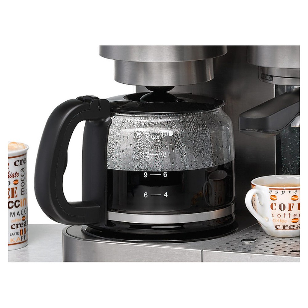 В комплект поставки входят фильтр-вставки на 1 и 2 чашки, сменный фильтр для воды и мерная ложка с темпером.