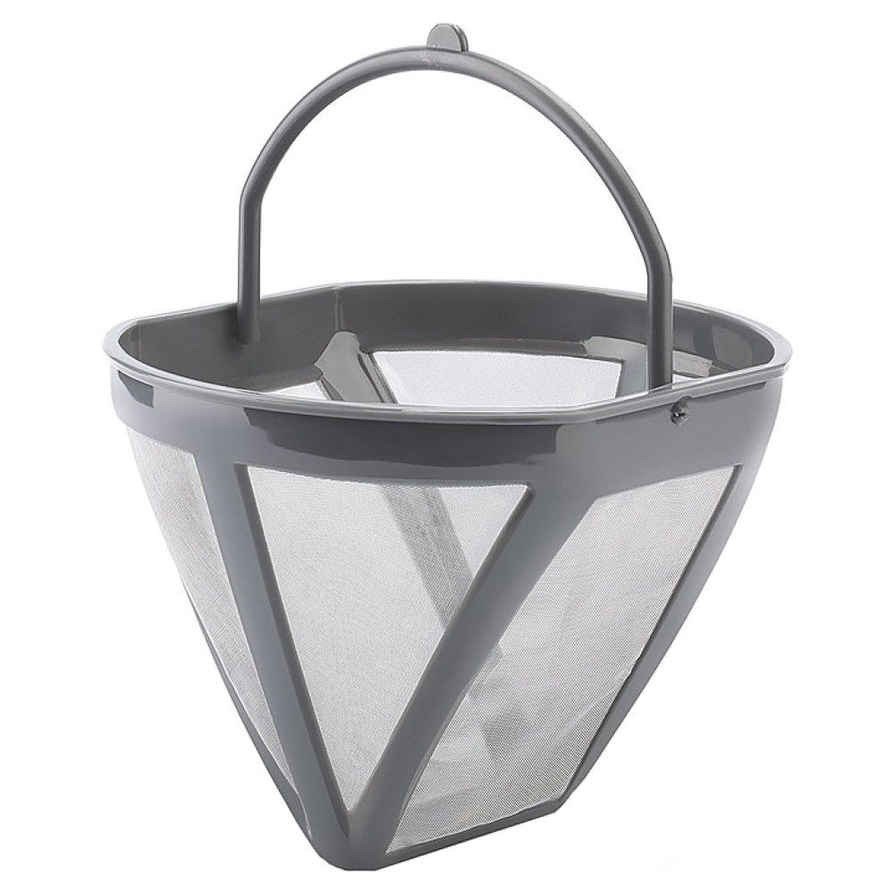 В комплект поставки входят стеклянный кувшин для кофе на 10 чашек с ручкой и крышкой, многоразовый фильтр с ручкой и мерная ложка для молотого кофе.