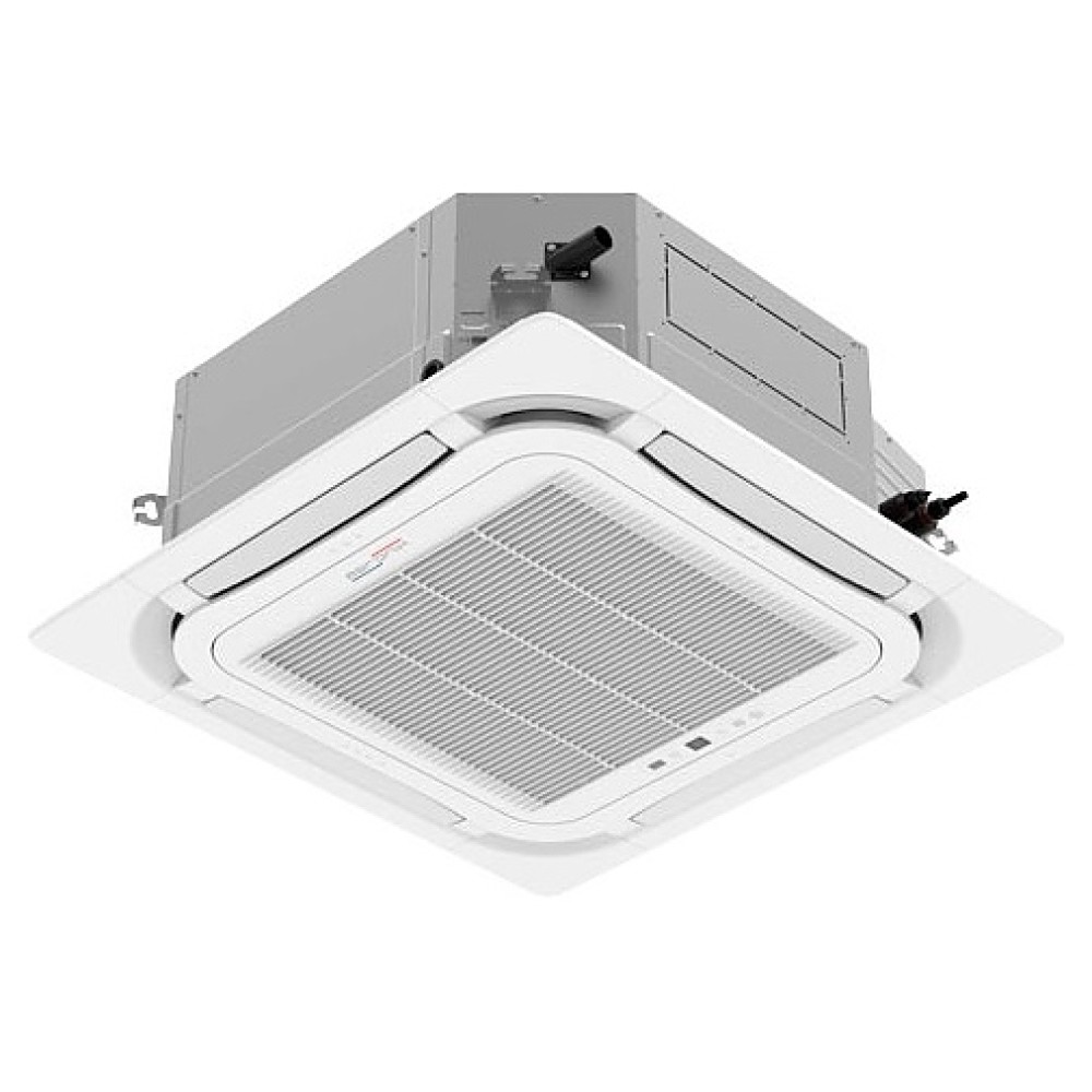Кассетная сплит-система Aeronik ASI-AKH140T1 A-S INV (ТF06) / ASO-AGUHN140W1 INV используется для создания максимально кофмортных условий микроклимата в административных, торговых и производственных помещениях. Модель состоит из наружного блока ASO-AGUHN140W1 INV и внутреннего блока ASI-AKH140T1 A-S INV кассетного типа с декоративной лицевой панелью ТF06. Наружный блок оснащен защитными вентиляционной решеткой и крышкой для вентилей, внутренний блок – электронным блоком управления, лицевая панель – воздухозаборной решеткой и воздуховыводящими отверстиями, пульт – кнопочной клавиатурой и дисплеем индикации со светодиодной подсветкой.