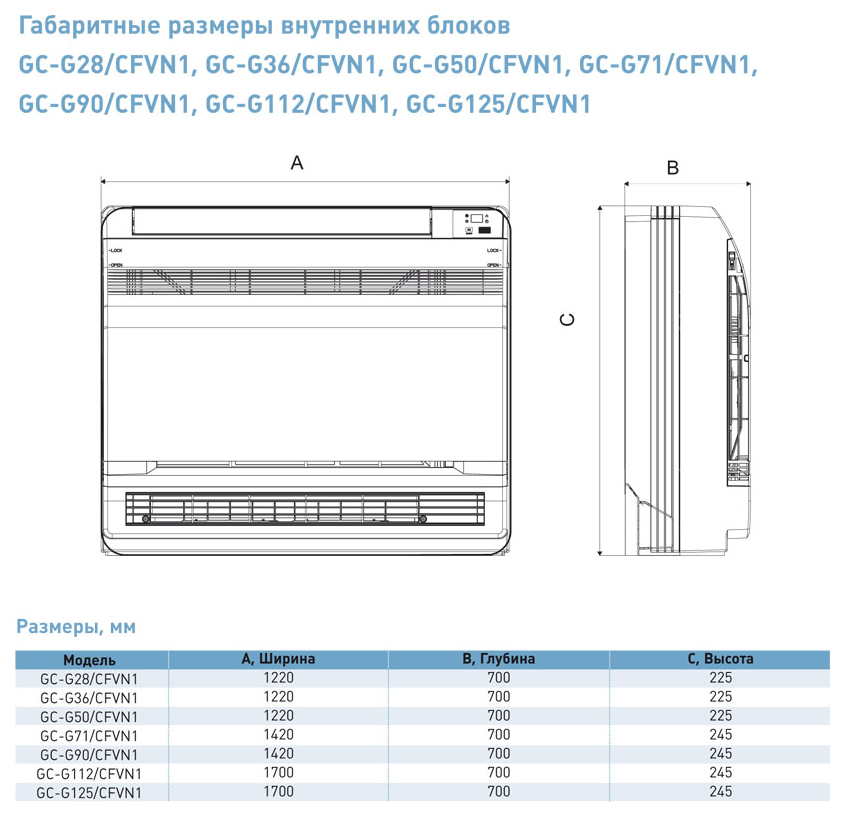 | Тип внутреннего блока | напольно-потолочный |