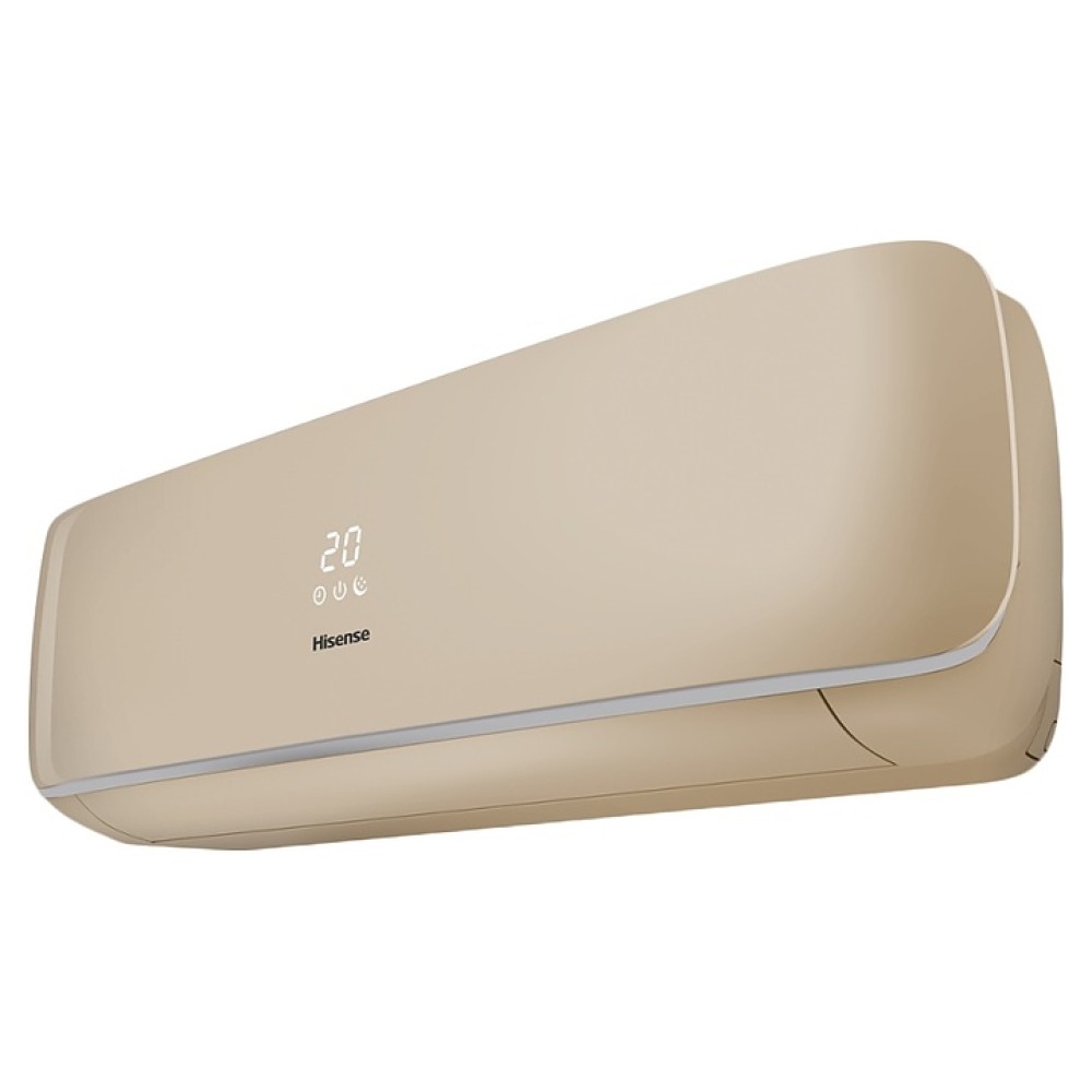 Настенная сплит-система Hisense AS-13UW4RVETG01(C) WI-FI серии CHAMPAGNE CRYSTAL SUPER DC Inverter (R32) Wi-Fi используется для создания максимально кофмортных условий микроклимата в жилых, офисных и коммерческих помещениях. Модель состоит из внутреннего блока AS-13UW4RVETG01G(С) и наружного блока AS-13UW4RVETG01W(С). Наружный блок оснащен теплообменником, 3-лопастным вентилятором, защитными решеткой и крышкой для сервисных вентилей, внутренний блок – теплообменником, воздухозаборной решеткой, откидной лицевой панелью, подвижными горизонтальными и вертикальными жалюзи, электронным блоком управления и светодиодным дисплеем Mirage скрытого типа с проецируемой на фронтальную панель индикацией, пульт – информативным жидкокристаллическим дисплеем и кнопочной клавиатурой. Облицовка внутреннего блока выполнена из пластика оттенка шампань, фронтальная панель обтекаемой выпуклой формы декорирована окантовкой серебристого оттенка, корпус наружного блока – из листовой стали с антикоррозийным покрытием белого цвета, корпус пульта – из ударопрочного белого пластика.