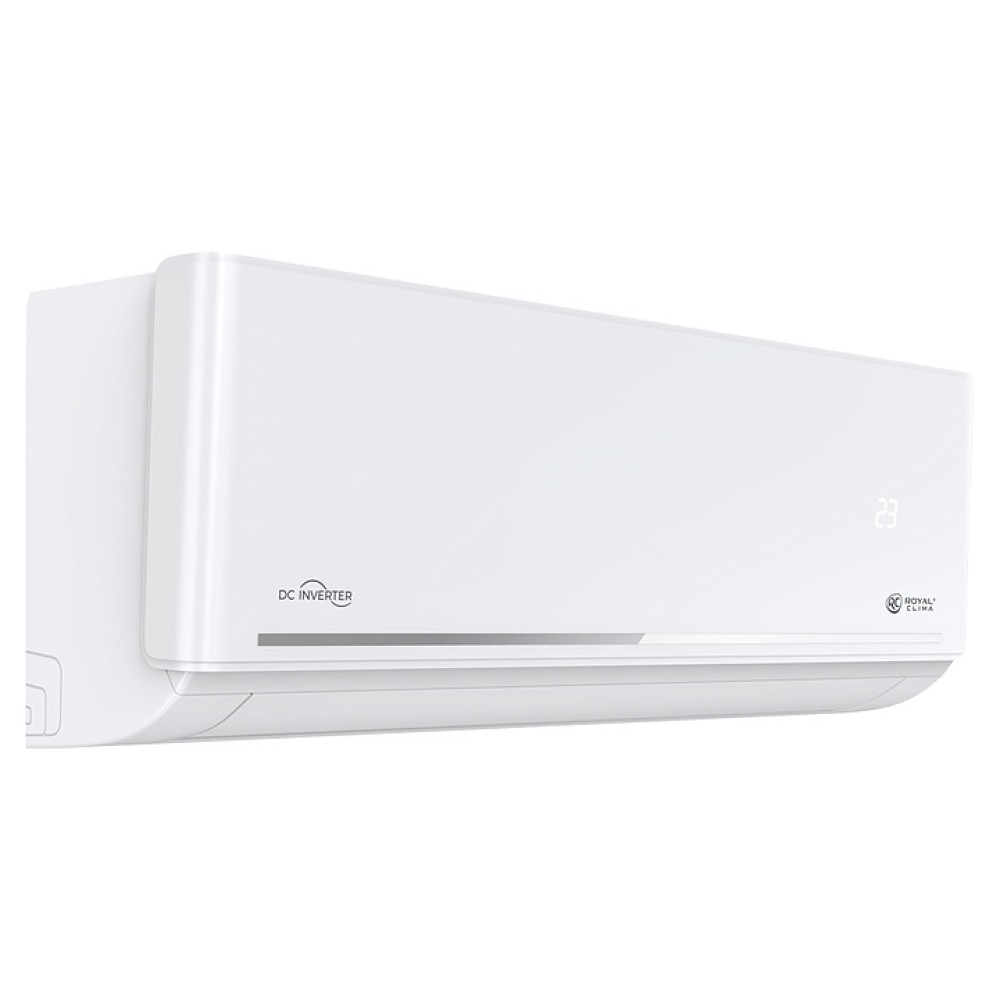 Настенная сплит-система ROYAL Clima RCI-FC55HN серии FELICITA Inverter используется для создания максимально кофмортных условий микроклимата в жилых, офисных и коммерческих помещениях. Модель состоит из внутреннего блока RCI-FC55HN/IN и наружного блока RCI-FC55HN/OUT. Наружный блок оснащен теплообменником, 3-лопастным вентилятором, защитными решеткой и крышкой для сервисных вентилей, внутренний блок – теплообменником, воздухозаборной решеткой, откидной лицевой панелью, подвижными горизонтальными и вертикальными жалюзи, электронным блоком управления и светодиодным дисплеем скрытого типа с проецируемой на фронтальную панель индикацией, пульт – информативным контрастным жидкокристаллическим дисплеем с подсветкой и кнопочной клавиатурой. Облицовка внутреннего блока выполнена из пластика с поверхностью белого цвета, фронтальная панель декорирована горизонтальной полосой c поверхностью серебристого оттенка, корпус пульта – из ударопрочного белого пластика.