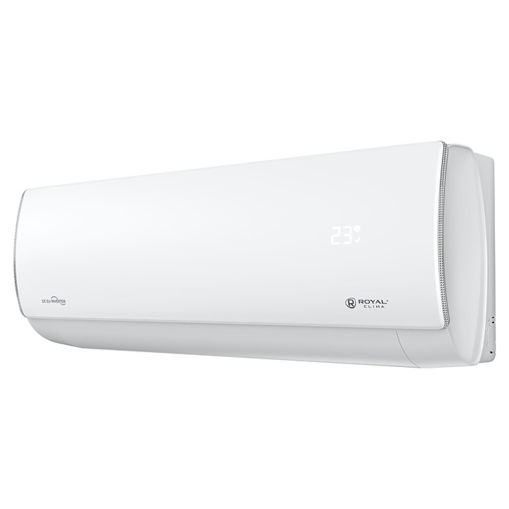 Настенная сплит-система ROYAL Clima RCI-PFD55HN серии PERFETTO DC EU Inverter 2025 используется для создания максимально кофмортных условий микроклимата в жилых, офисных и коммерческих помещениях. Модель состоит из внутреннего блока RCI-PFD55HN/IN и наружного блока RCI-PFD55HN/OUT. Наружный блок оснащен теплообменником и 3-лопастным вентилятором с защитной решеткой, внутренний блок – теплообменником, воздухозаборной решеткой, откидной лицевой панелью, подвижными горизонтальными и вертикальными жалюзи, электронным блоком управления и светодиодным дисплеем скрытого типа с проецируемой на фронтальную панель индикацией, пульт – информативным жидкокристаллическим дисплеем с яркой оранжевой подсветкой и кнопочной клавиатурой. Облицовка внутреннего блока выполнена из пластика с поверхностью белого цвета, фронтальная панель выпуклой формы декорирована боковыми окантовками c текстурной поверхностью серебристого оттенка, корпус наружного блока –из листовой стали с антикоррозийным покрытием белого цвета, корпус пульта – из ударопрочного белого пластика.