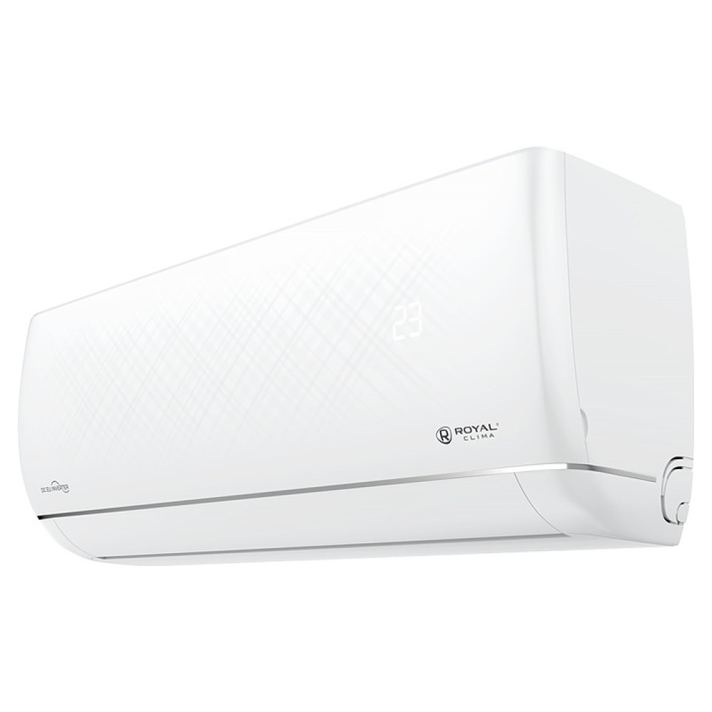 Настенная сплит-система ROYAL Clima RCI-RNS24HN серии RENAISSANCE DC EU Inverter 2023 используется для создания максимально кофмортных условий микроклимата в жилых, офисных и коммерческих помещениях. Модель состоит из внутреннего блока RCI-RNS24HN/IN и наружного блока RCI-RNS24HN/OUT. Наружный блок оснащен виброопорами, защитными вентиляционной решеткой и крышкой для вентилей, внутренний блок – воздухозаборной решеткой, откидной фронтальной крышкой, подвижной горизонтальной заслонкой, электронным блоком управления и светодиодным дисплеем скрытого типа с проецируемой на поверхность фронтальной панели индикацией, пульт – информативным жидкокристаллическим дисплеем и кнопочной клавиатурой. Корпус внутреннего блока обтекаемой формы с фактурной поверхностью белого цвета и декором фронтальной панели серебристой горизонтальной полосой, корпус пульта выполнен из ударопрочного белого пластика, теплообменники имеют покрытие ламелей Blue Fin с высокими антикоррозийными и теплопроводящими свойствами.