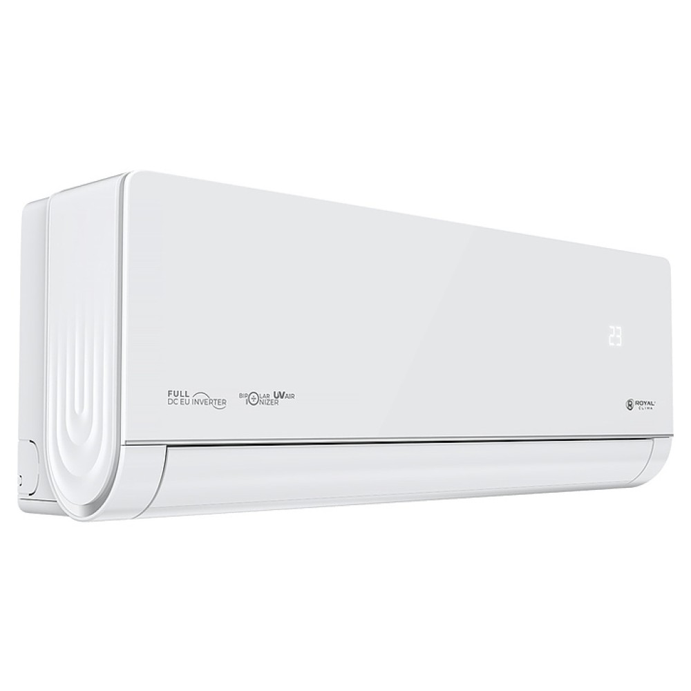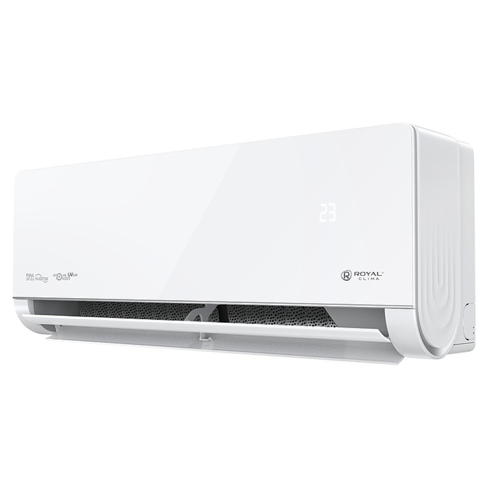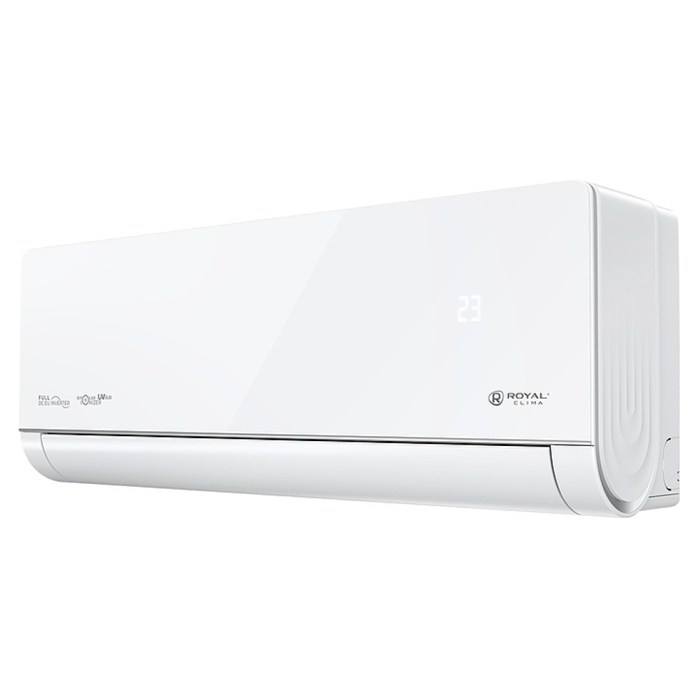 Настенная сплит-система ROYAL Clima RCI-RSB40HN серии ROYAL SUPREMO BLANCO Full DC EU Inverter используется для создания максимально кофмортных условий микроклимата в жилых, офисных и коммерческих помещениях. Модель состоит из внутреннего блока RCI-RSB40HN/IN и наружного блока RCI-RSB40HN/OUT. Наружный блок оснащен 3-лопастным вентилятором, защитными решеткой и крышкой для сервисных вентилей, внутренний блок – воздухозаборной решеткой, откидной лицевой панелью, подвижными горизонтальными и вертикальными жалюзи, электронным блоком управления и светодиодным дисплеем скрытого типа с проецируемой на фронтальную панель индикацией, пульт – информативным жидкокристаллическим дисплеем с яркой оранжевой подсветкой и кнопочной клавиатурой. Облицовка внутреннего блока выполнена из пластика с поверхностью белого цвета и декоративными фронтальными и боковыми вставками серебристого оттенка, корпус пульта – из ударопрочного белого пластика.