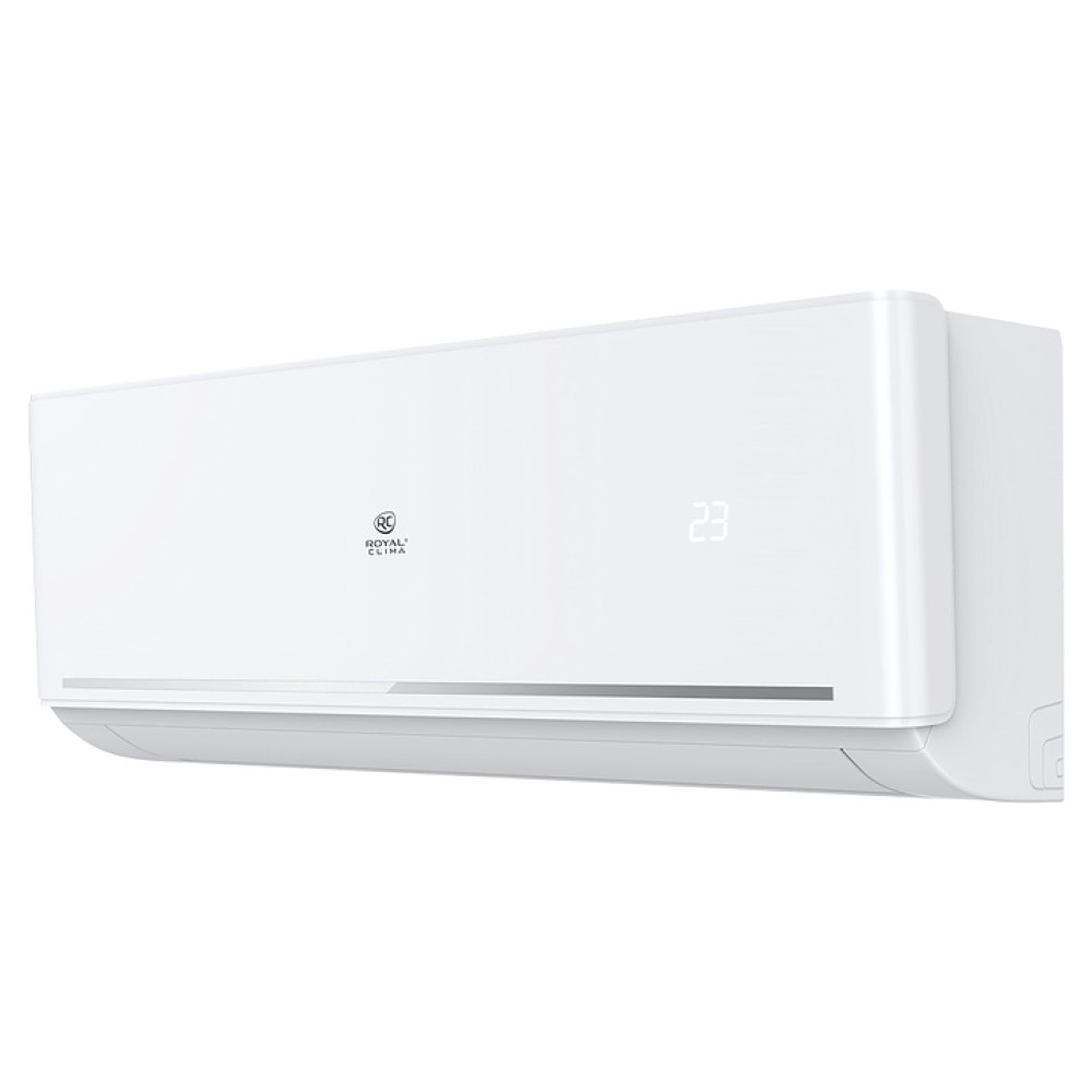 Настенная сплит-система ROYAL Clima RC-FC28HN серии FELICITA используется для создания максимально кофмортных условий микроклимата в жилых, офисных и коммерческих помещениях. Модель состоит из внутреннего блока RC-FC28HN/IN и наружного блока RC-FC28HN/OUT. Наружный блок оснащен теплообменником, 3-лопастным вентилятором, защитными решеткой и крышкой для сервисных вентилей, внутренний блок – теплообменником, воздухозаборной решеткой, откидной лицевой панелью, подвижными горизонтальными и вертикальными жалюзи, электронным блоком управления и светодиодным дисплеем скрытого типа с проецируемой на фронтальную панель индикацией, пульт – информативным жидкокристаллическим дисплеем с яркой оранжевой подсветкой и кнопочной клавиатурой. Облицовка внутреннего блока выполнена из пластика с поверхностью белого цвета, фронтальная панель декорирована горизонтальной полосой c поверхностью серебристого оттенка, корпус пульта – из ударопрочного черного пластика.