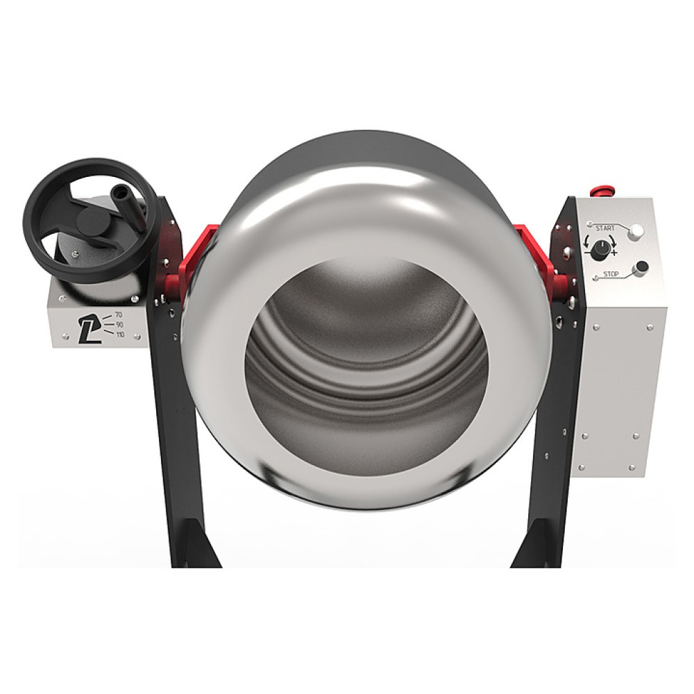 Дражировочный барабан Kadzama 27 кг предназначен для производства драже методом накатки различных субстанций на арахис и другие орехи на предприятиях общественного питания и торговли. Модель оснащена вращающимся барабаном и колесами со стопорами. Корпус и барабан выполнены из нержавеющей стали AISI 304.