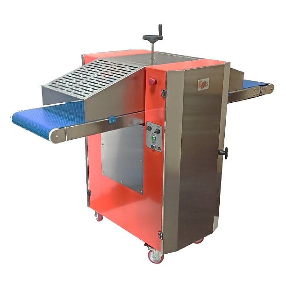 Машина горизонтальной нарезки Confimec CONFISLICE используется на предприятиях пищевой промышленности, в пекарнях и кондитерских для нарезки бисквитных коржей, багетов, булочек, тортов, рулетов, пирожных и другой штучной продукции на ровные куски заданного размера. Модель оснащена 3 сдвоенными ножами и колесами с тормозами. Корпус выполнен из окрашенной нержавеющей стали.