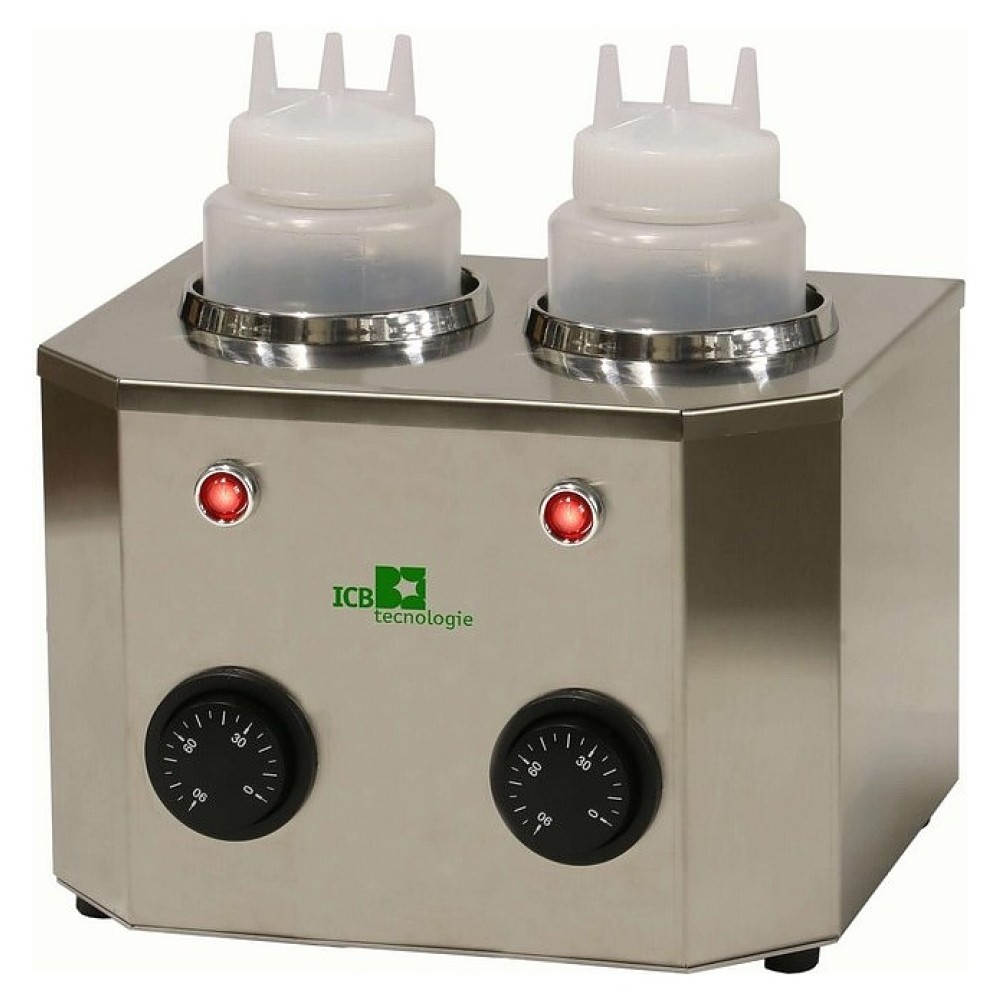 Подогреватель топпинга ICB tecnologie s.r.l. 09.WS2 предназначен для поддержания в теплом состоянии и разогрева топпингов и соусов на предприятиях общественного питания и торговли. Модель оснащена аналоговыми термостатами и двумя бутылками. Корпус выполнен из нержавеющей стали, бутылки - из пластика.