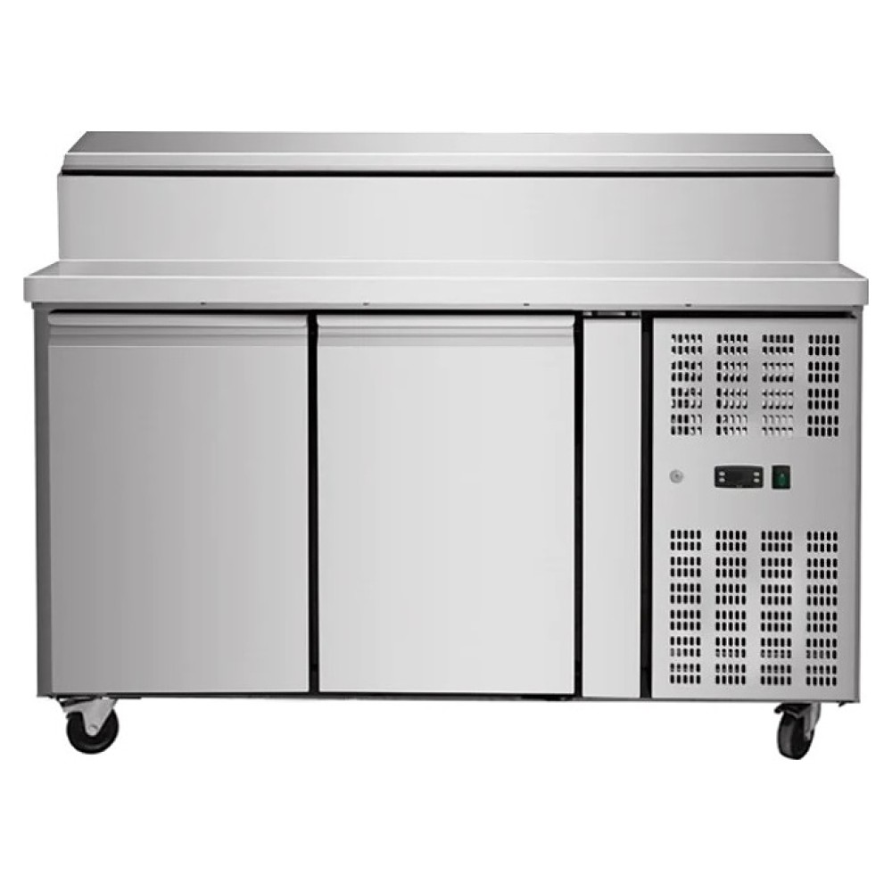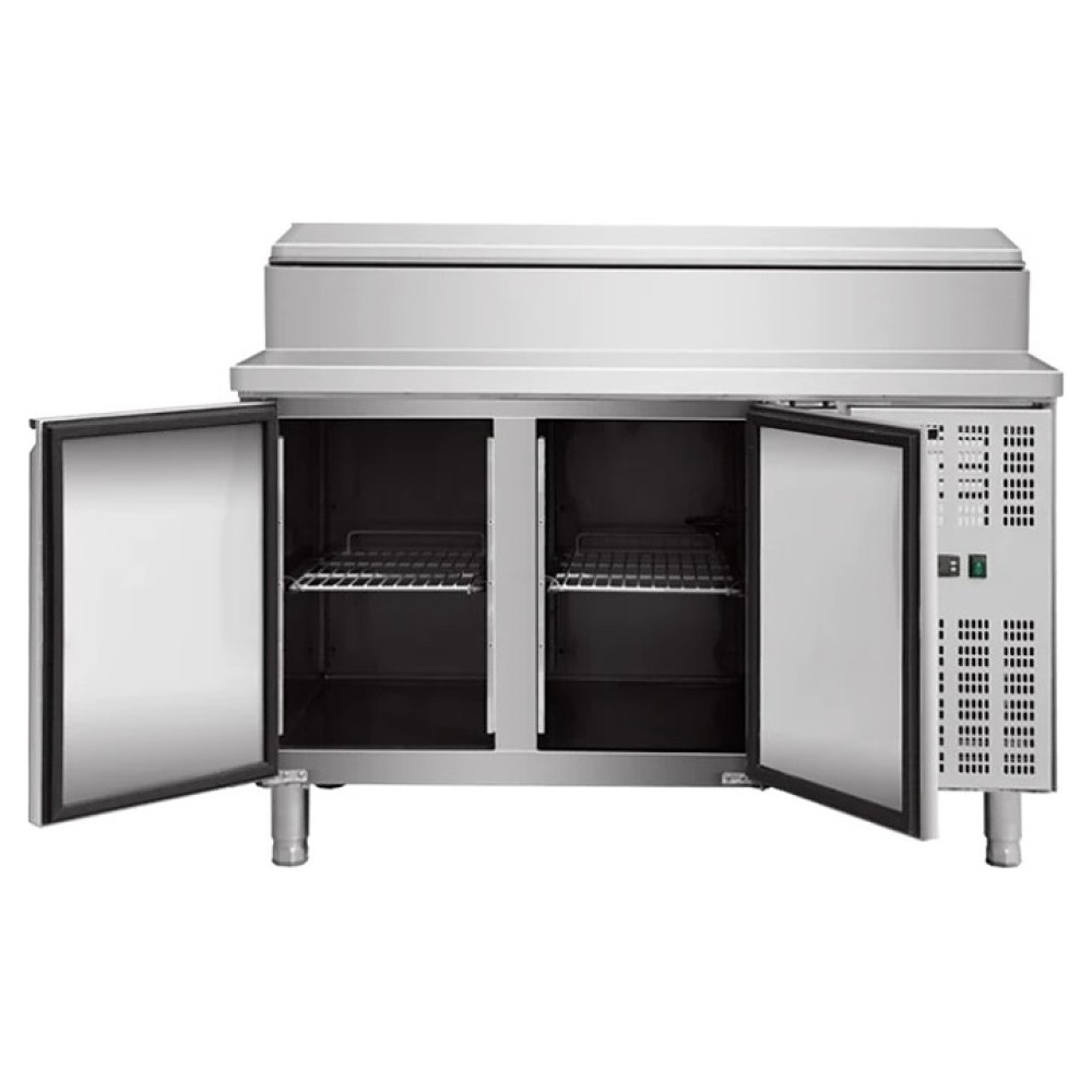 Холодильный стол Koreco SH/2000/700 предназначен для обработки ингридиентов для салатов и кратковременного хранения предварительно охлажденных пищевых продуктов на предприятиях общественного питания и торговли. Модель оснащена расположенным справа встроенным холодильным агрегатом, 2 холодильными секциями с распашными дверьми, салат-баром с откидной крышкой и электронным блоком управления. Корпус выполнен из высококачественной нержавеющей стали марки AISI201, полки – из металла с полимерным покрытием.
