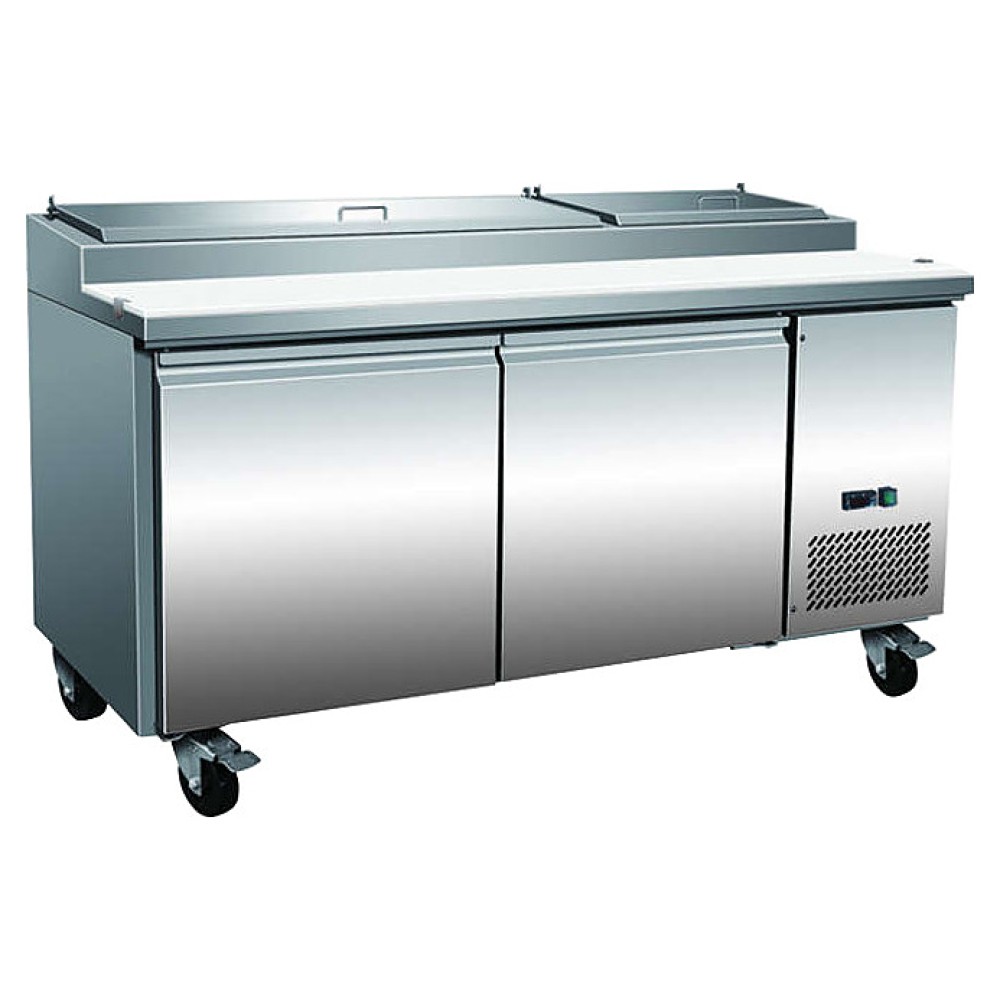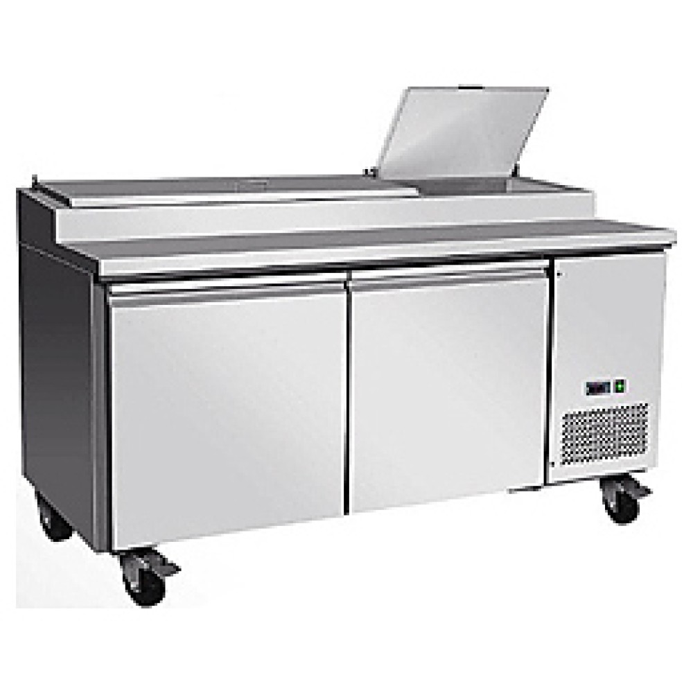 Холодильный стол Koreco TPP67 (TPP2) предназначен для раскатки теста и обработки ингредиентов для приготовления пиццы, салатов, закусок и сэндвичей, охлаждения и кратковременного хранения скоропортящихся продуктов и напитков на предприятиях общественного питания и торговли. Корпус и камера выполнены из нержавеющей стали AISI 304, вставкавставки, накладывающейся на рабочую поверхность - из пищевого полиэтилена.