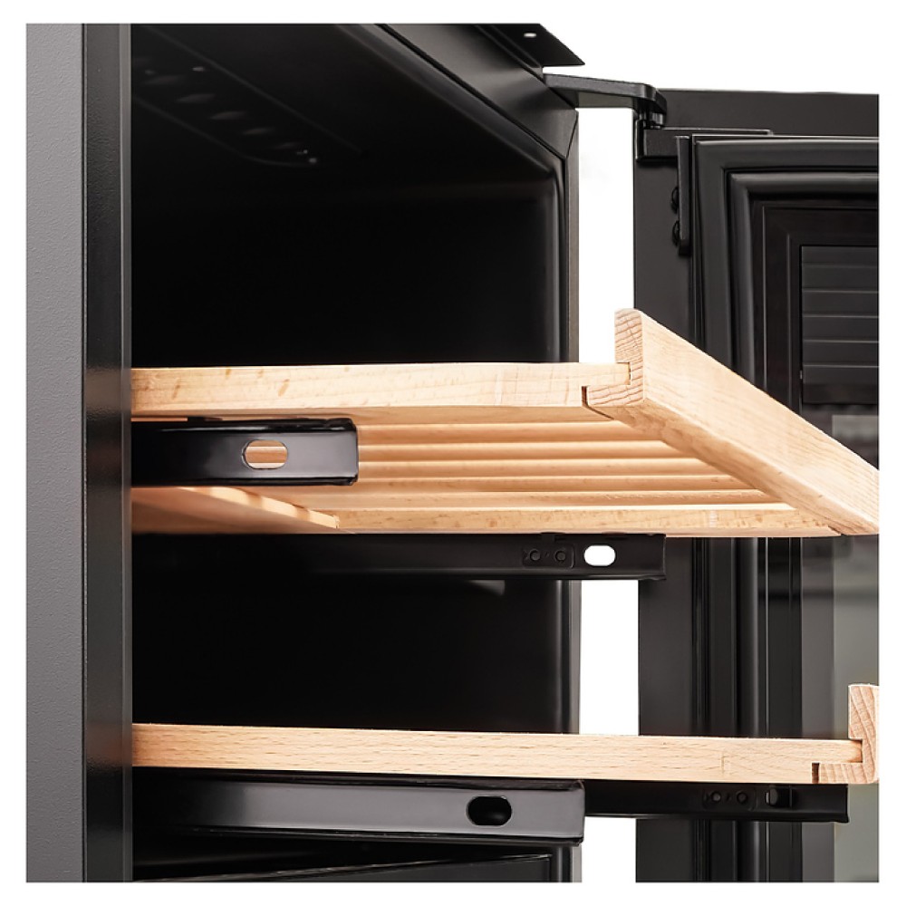 Винный шкаф Korting KFW 604 DB GN предназначен для охлаждения, хранения при оптимальных условиях и демонстрации бутилированного вина различных сортов в барах, ресторанах, специализированных магазинах, подсобных складских помещениях, а также в домашних условиях. Модель оснащена холодильной камерой с 3 выдвижными полками, распашной дверью, сенсорным управлением и обзорным окном. Корпус выполнен из нержавеющей стали, окно - из тонированного стекла, полки – из бука.