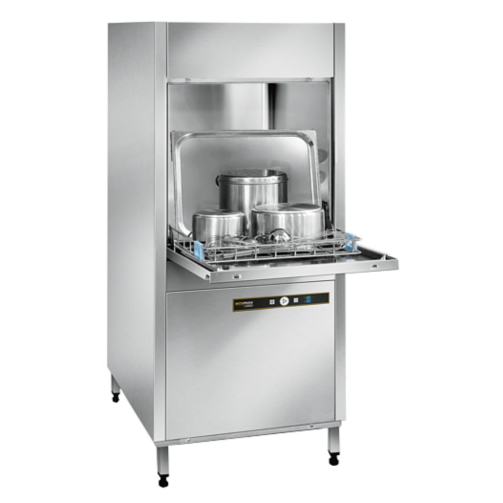 Котломоечная машина Hobart Ecomax U704-11B используется на предприятиях общественного питания и торговли для мойки больших кастрюль, тарелок, стаканов, бокалов, столовых приборов, а также гастроемкостей и противней. Модель оснащена электронной панелью управления. Корпус и сетчатый фильтр моечного бака выполнены из нержавеющей стали.
