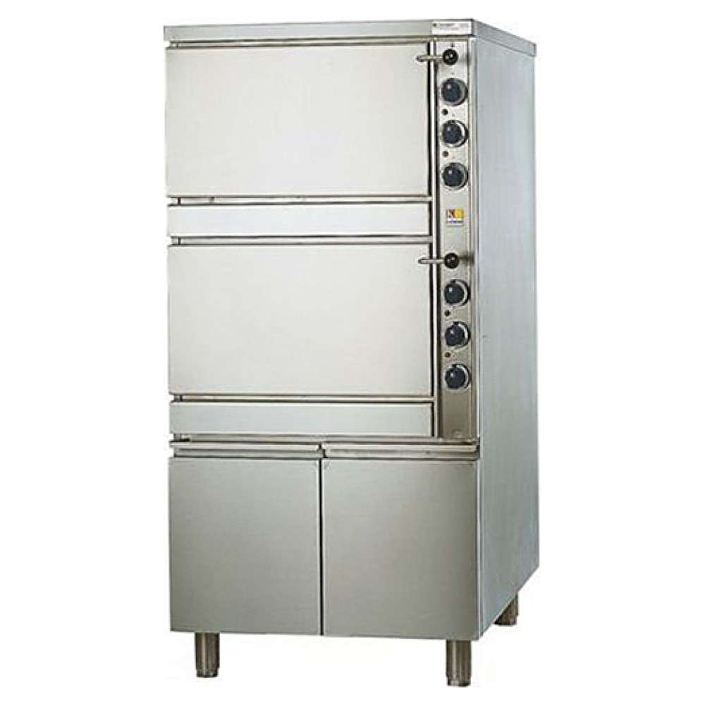 Жарочный двухсекционный шкаф Kovinastroj (Kogast) KSP-T2 на двухстворчатом пьедестале предназначен для тепловой обработки пищевых продуктов в функциональных и других емкостях. Внутренний объём каждой секции обеспечивает размещение трёх противней GN 2/1.