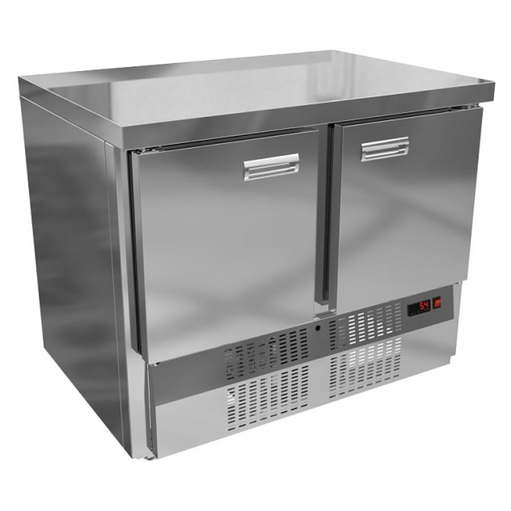 Холодильный стол KRONER СХб 2-100-60 используется на предприятиях общественного питания и торговли для хранения предварительно охлажденных мясных и рыбных полуфабрикатов, заготовок для салатов, молочной продукции, охлажденных напитков и других пищевых продуктов, а также для приготовления блюд на рабочей поверхности. Модель оснащена расположенным снизу агрегатным отсеком, столешницей с бортом, 2 глухими распашными дверьми с магнитным уплотнителем и регулируемыми по высоте ножками. Передняя панель моторного отсека имеет большую площадь перфорации, что позволяет обеспечить поступление воздуха для охлаждения. Корпус выполнен из высококачественной нержавеющей стали, задняя стенка - из оцинкованной стали, ручки - из алюминия.