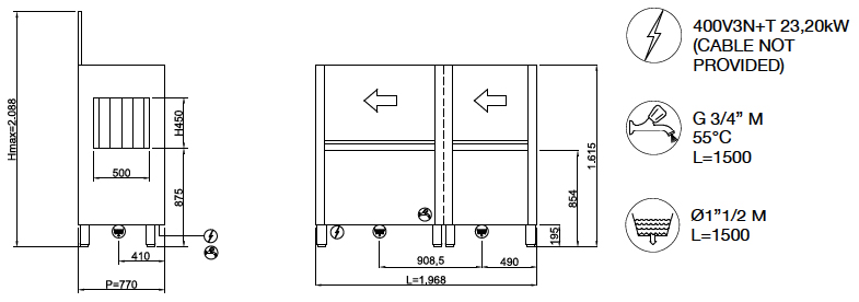 | Высота1615 мм | Глубина770 мм | Ширина1968 мм |