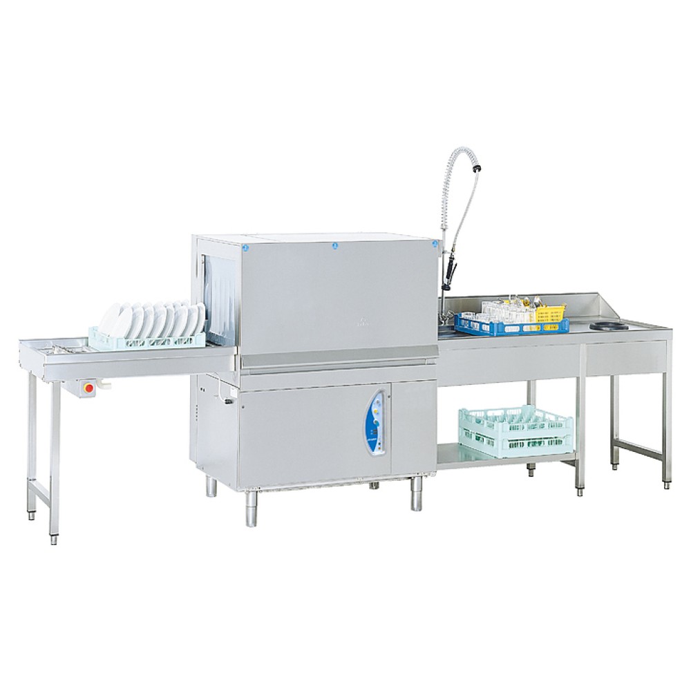 Туннельная посудомоечная машина Lamber M115 используется на предприятиях общественного питания и торговли для мойки стаканов, чашек, тарелок, столовых приборов, гастроемкостей и прочего кухонного инвентаря. Модель оснащена электронной панелью управления с цифровым дисплеем и моечным баком с закругленными углами и самоочищающимся наклонным дном. Корпус и моечный бак выполнены из нержавеющей стали AISI 304 18/10, насос мойки, моечные и ополаскивающие рукава - из нержавеющей стали.