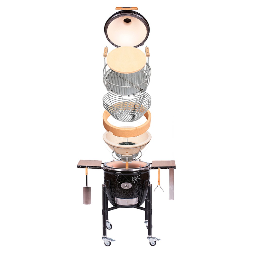Керамический гриль Monolith LeCHEF PRO-Serie 2.0 предназначен для приготовления блюд на древесном угле в частных домах и на предприятиях общественного питания. Модель сочетает в себе 5 видов оборудования для высокотемпературного приготовления пищи: мангал, тандыр, барбекю, гриль и коптильня. Корпус покрыт специальной глазурью, защищающей от выцветания на солнце и воздействия атмосферных осадков.