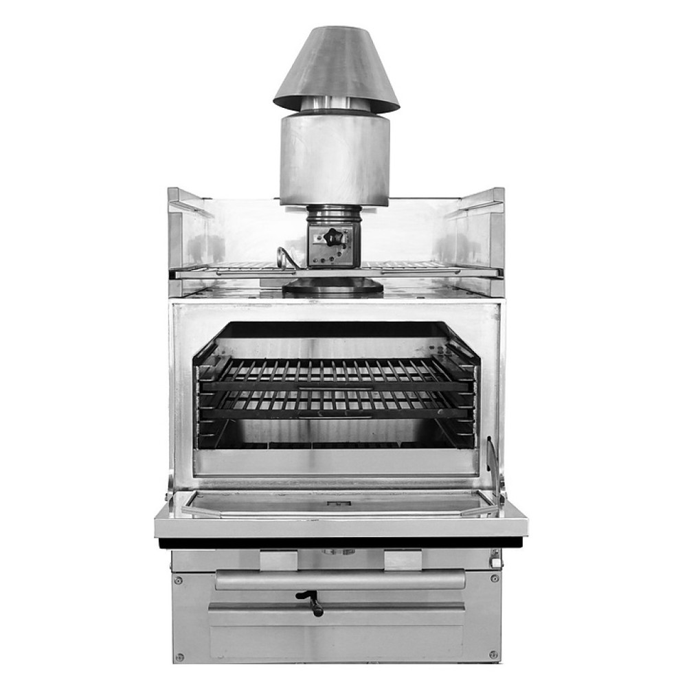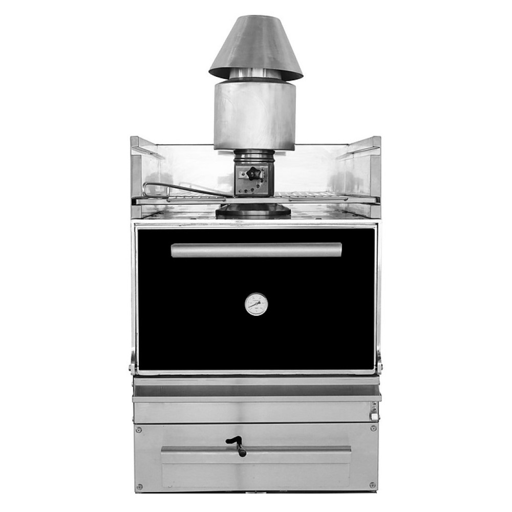 Угольный гриль-мангал Kocateq G 25 HJX BK предназначен для приготовления мяса, рыбы, овощей и других продуктов с использованием углей на предприятиях общественного питания и торговли. Модель оснащена шибером для регулировки интенсивности горения. Дверь покрыта жаропрочной эмалью черного цвета.